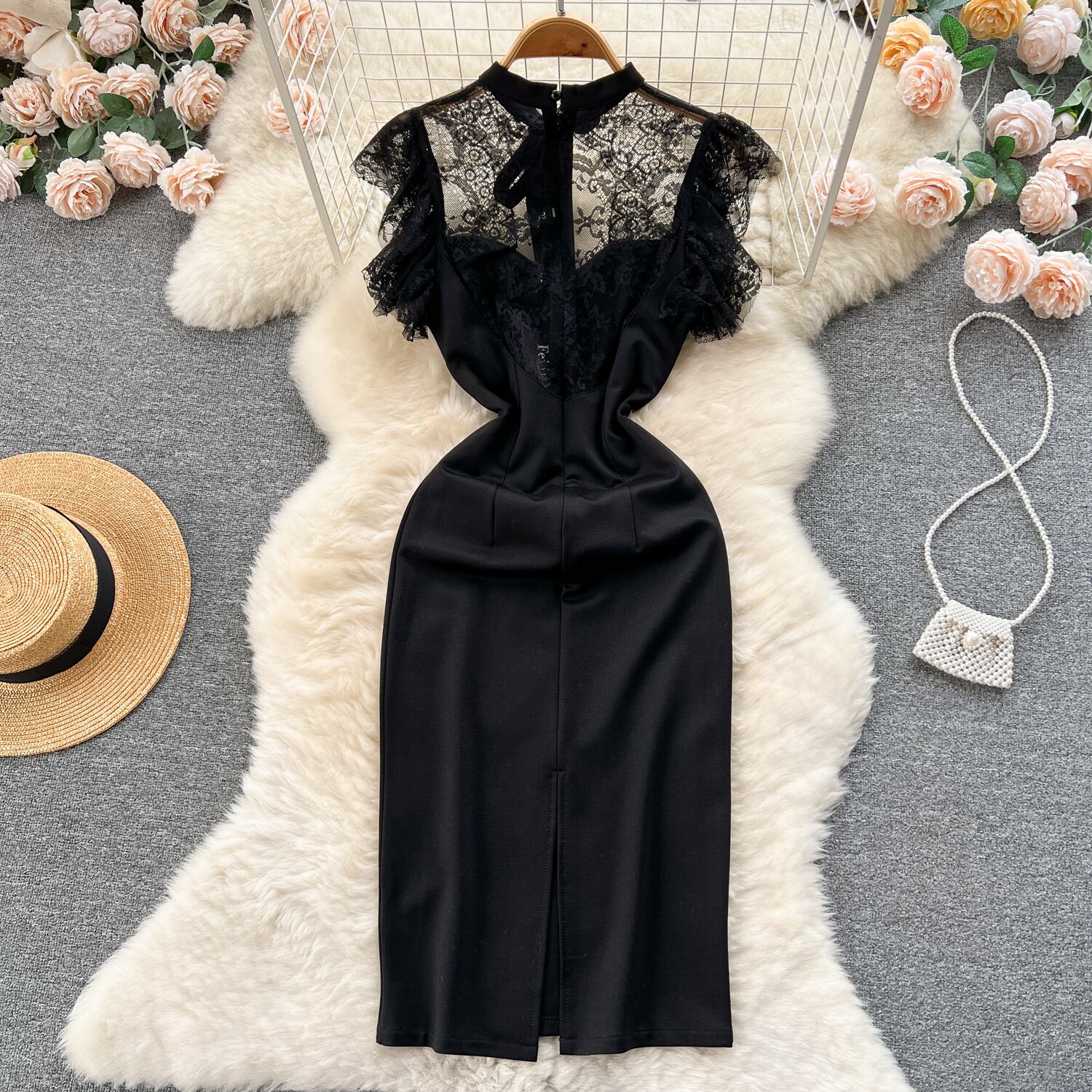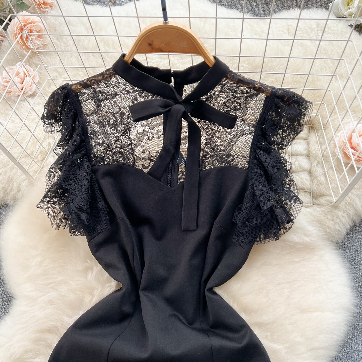 慎重な機械中空レースステッチシフォンドレス女性の夏の気質セクシーなミッドレングス大きなスイングバッグヒップスカートトレンディな サマー 夏物 lyxaj43276229436