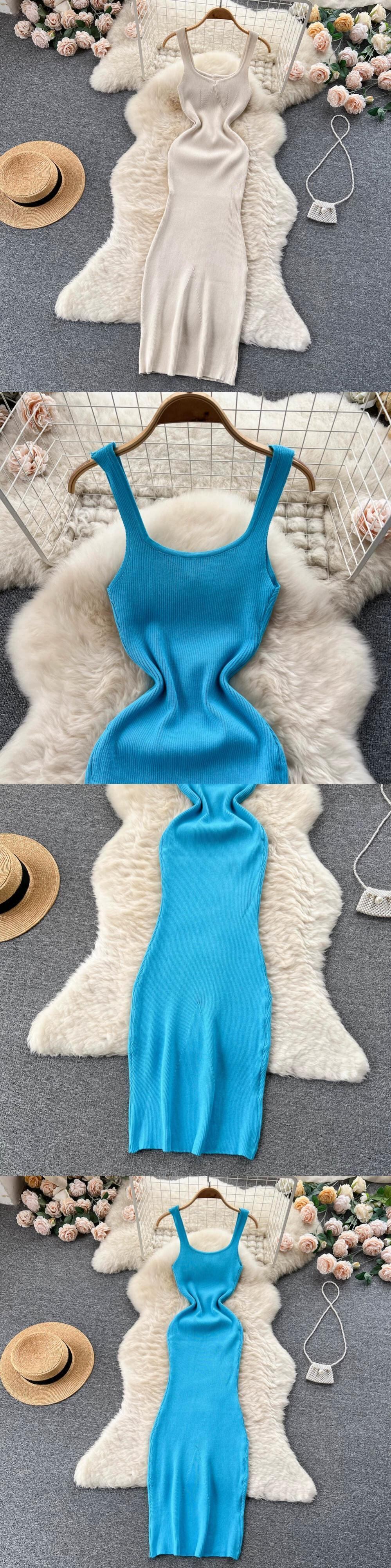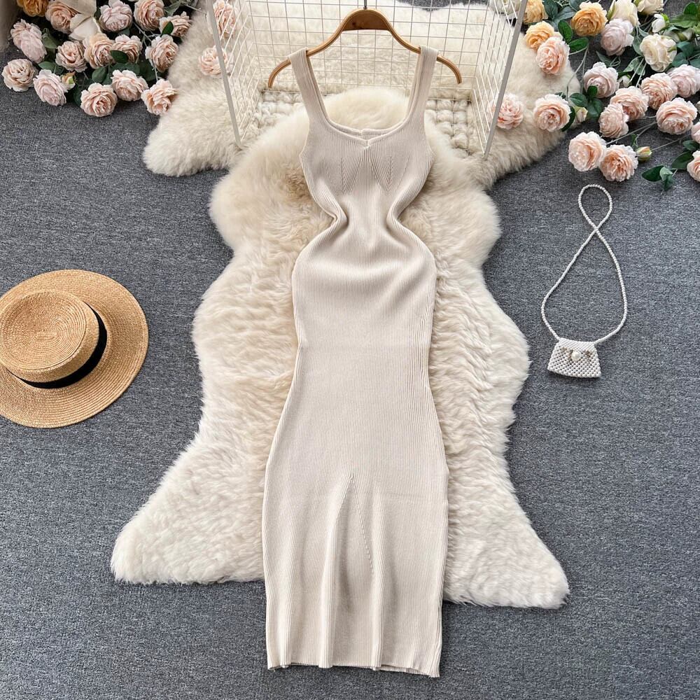 春と夏の新しいオールマッチセクシーなスリムヒップドレス女性バージョンシックなニットソリッドカラーボトムセクシードレス スプリング 春物 サマー 夏物 lyxaj9474650453