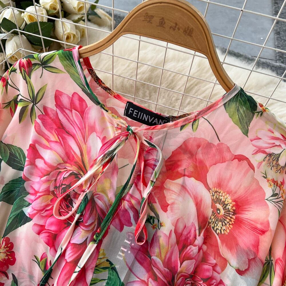 春の新スタイルフレンチホリデー風プリントビッグスイングロングスカート女性の春と秋の新しいウエスト妖精シフォンドレス スプリング 春物 オータム 秋物 lyxaj80490606049