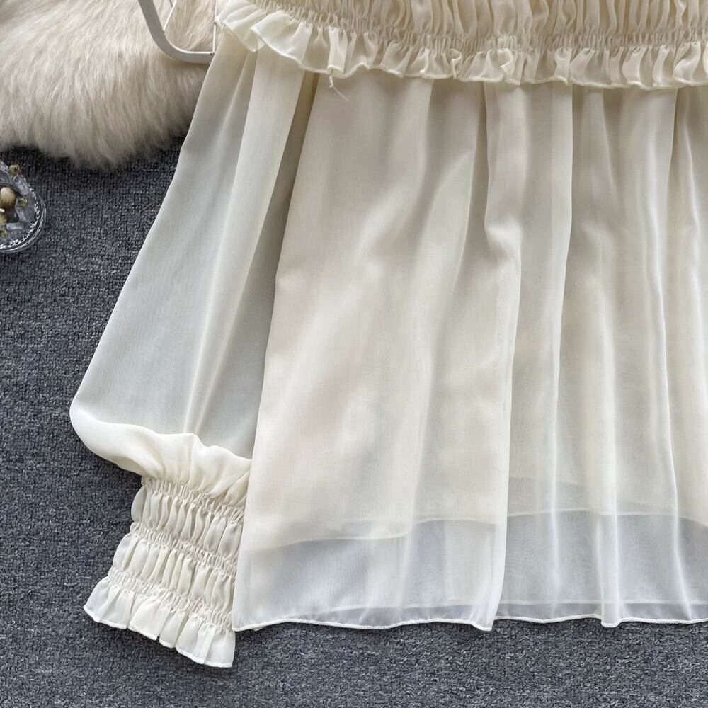ジェントルスタイルワンショルダースリムシフォン折りパフスリーブトップレディースルーズシャツトレンディ lyxaj32789005272