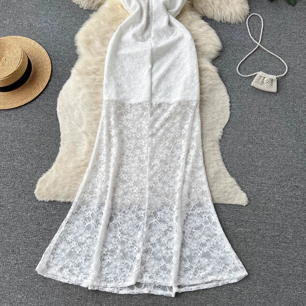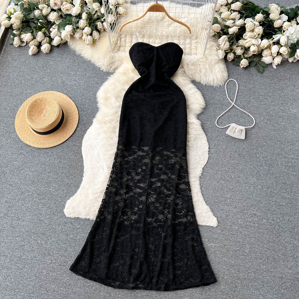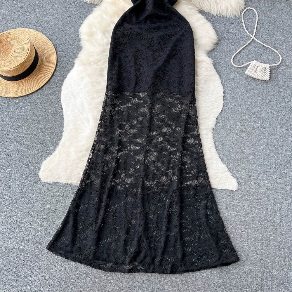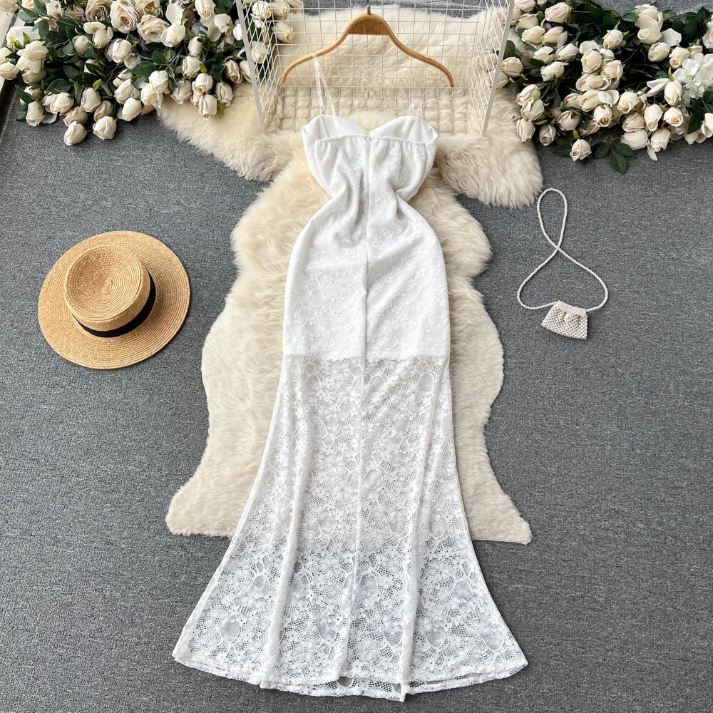 フレンチセレブスタイルスリムウエストセクシーなロングスカート女性ハイエンド純粋な欲望のドレスレースフックフラワーサスペンダードレス ピュア フラワーデザイン lyxaj7378404270