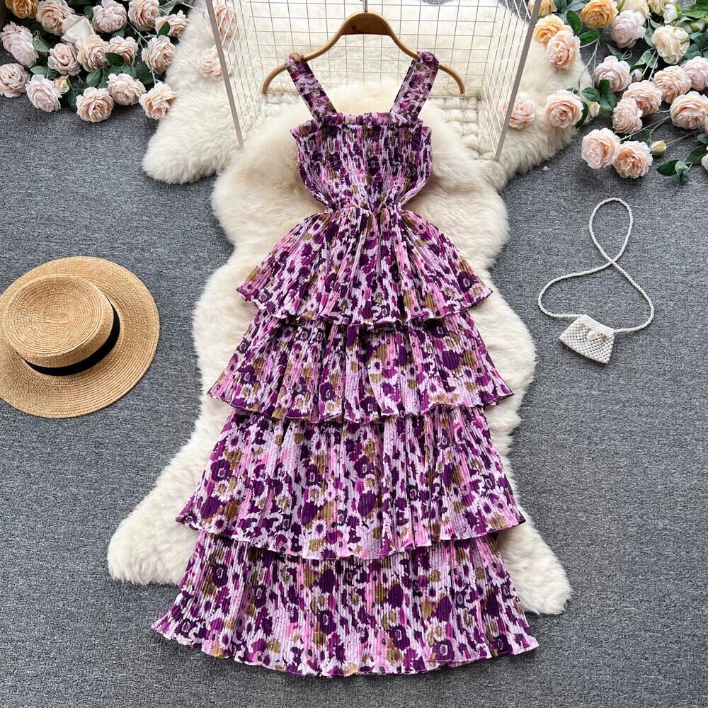 フレンチハイエンド感覚ニッチスイートウエストケーキドレス女性ちょう結び初恋キキョウフラワーサスペンダードレス リボン 大人ガーリー スウィート キュート カジュアル フラワーデザイン lyxaj44007208919