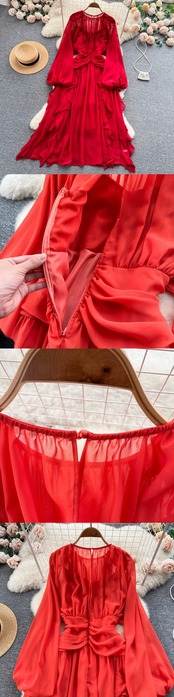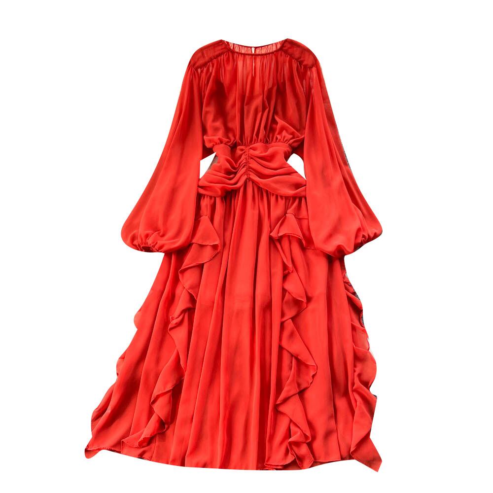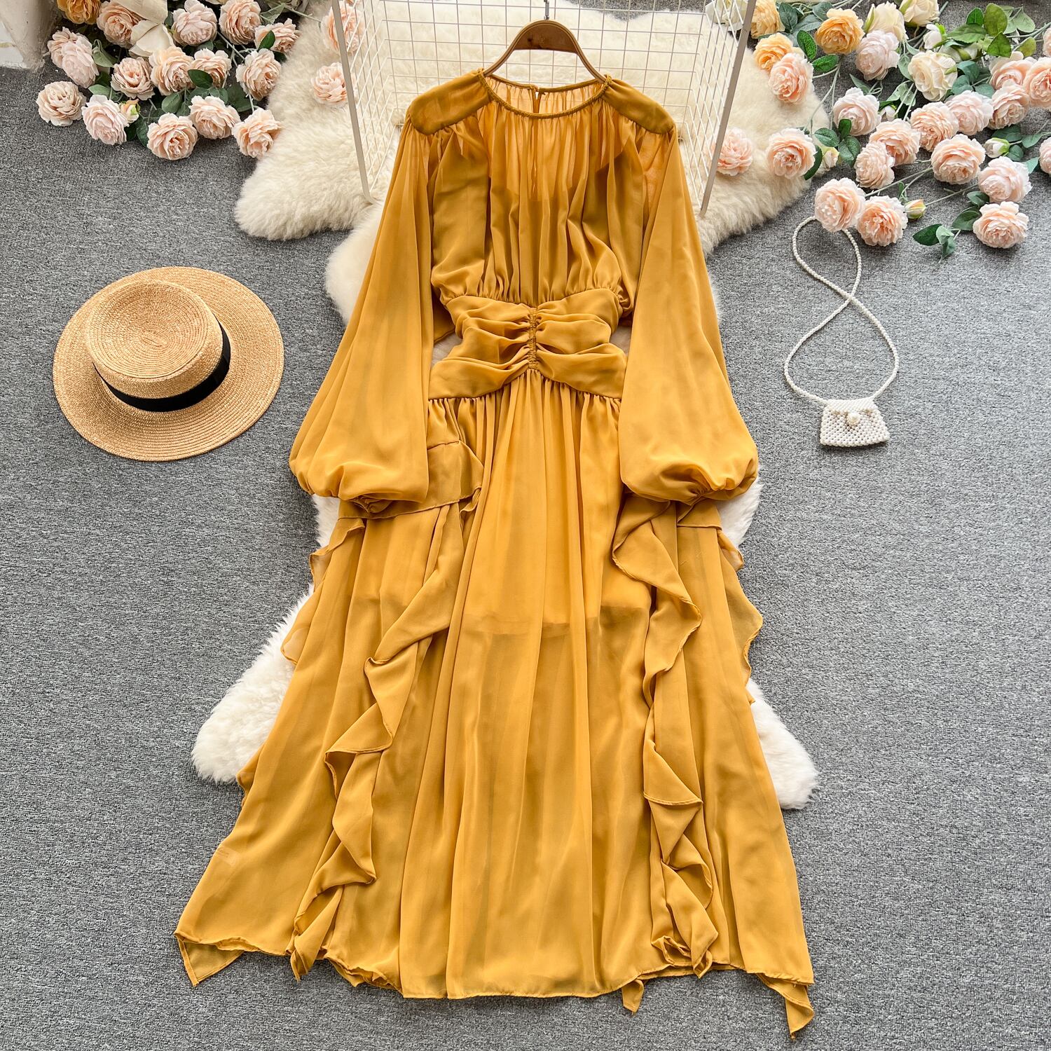 春と秋の新しいハイエンドの社交家気質の蓮の葉エッジビッグスイングスリムシフォンドレス女性エスニックスタイルロングスカート スプリング 春物 オータム 秋物 lyxaj29428027139