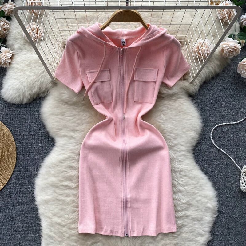 甘辛スタイルカジュアルスポーツスカート女性の夏スリムショートフード付きジッパータイトドレス半袖バッグヒップスカート 大人ガーリー スウィート キュート サマー 夏物 lyxaj89934395360