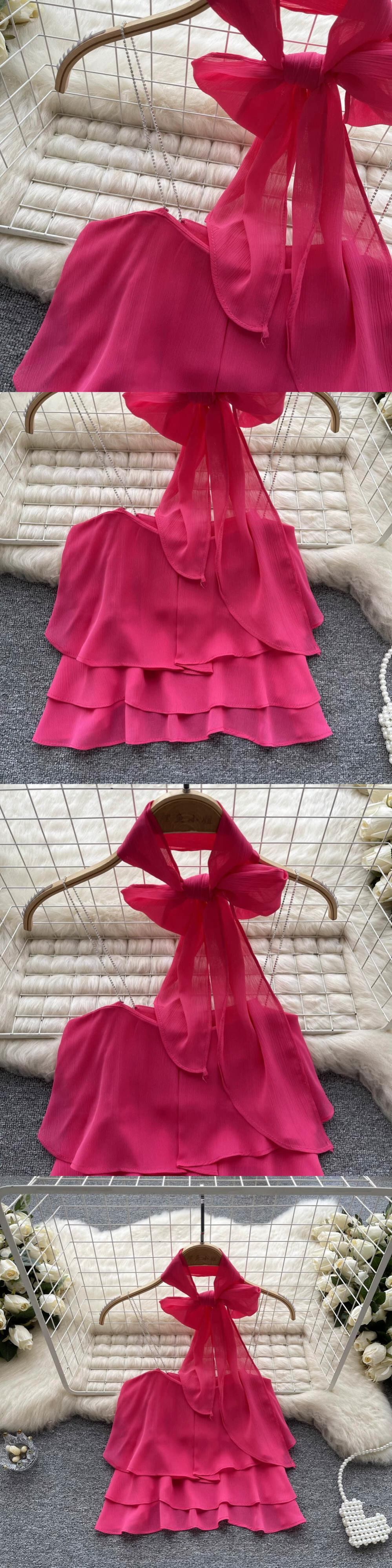 穏やかなスタイルの気質蝶ネクタイぶら下げネックキャミソール女性純粋な欲望風ニッチデザインセンスケーキ妖精トップ潮 リボン ピュア lyxaj67965702989