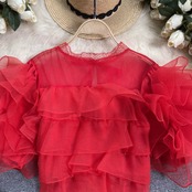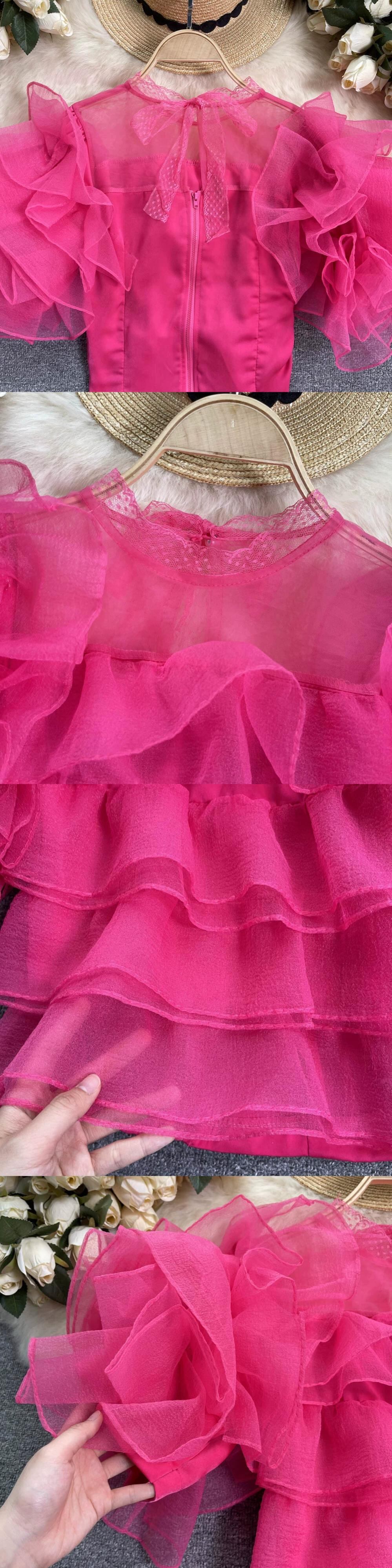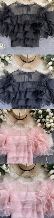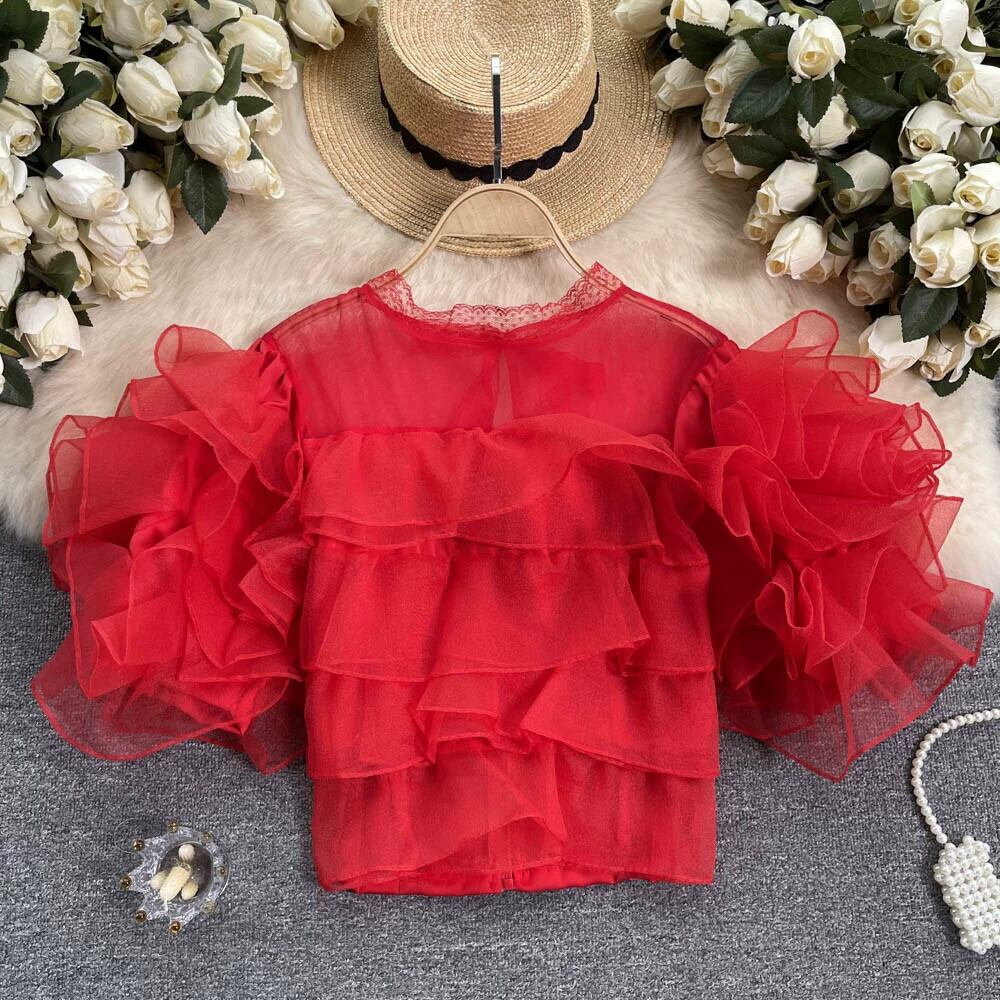 スーパーフェアリーネットガーゼフリルパフスリーブシャツ女性の夏の新しいユニークなデザインセンスeignスタイルシフォン小さなシャツ潮 サマー 夏物 lyxaj37915851404
