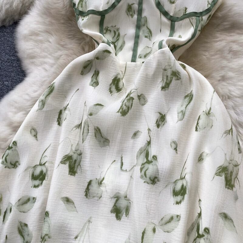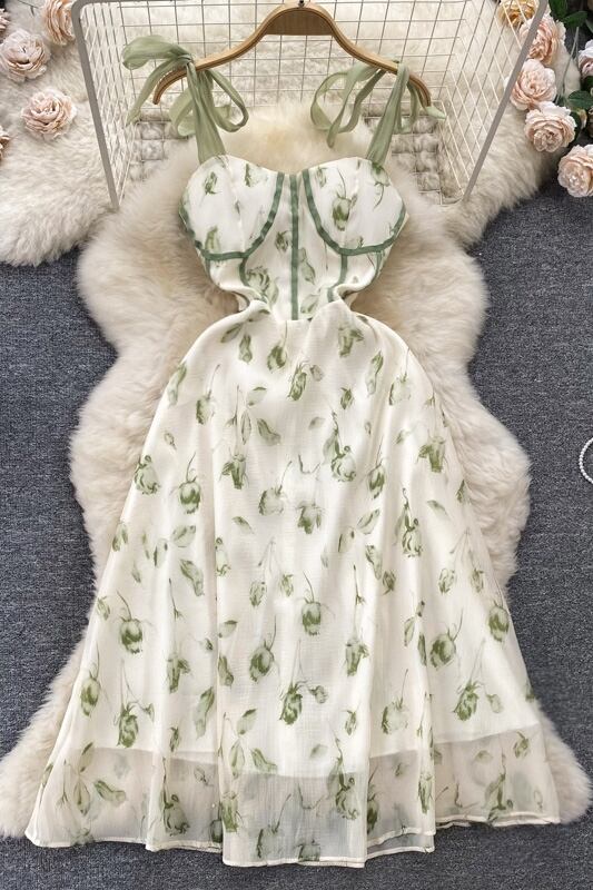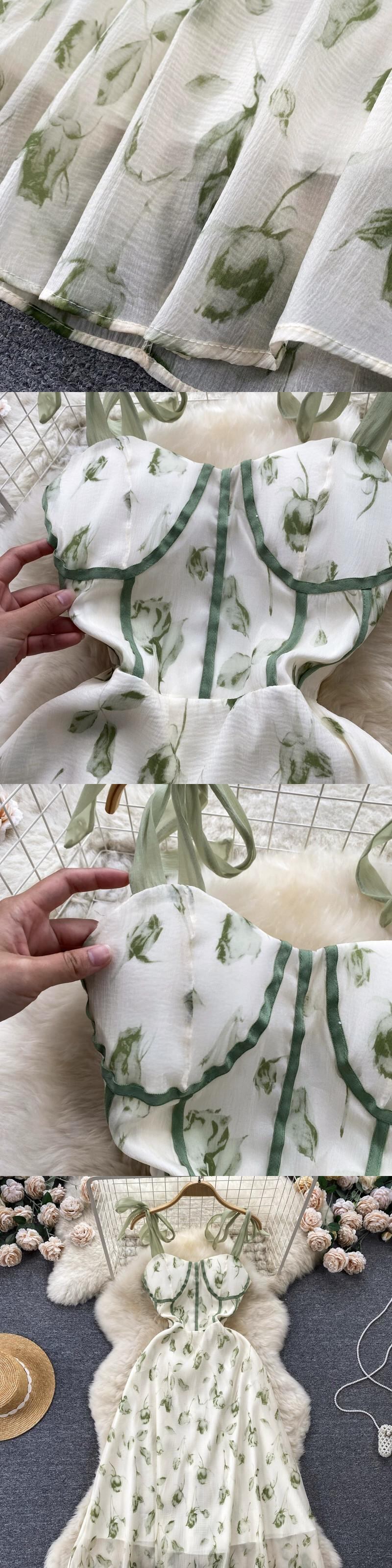フランスのハイエンドの花柄チューブトップサスペンダードレス夏の新しいニッチ気質純粋な欲望風ウエストロングスカート サマー 夏物 ピュア lyxaj83364768301