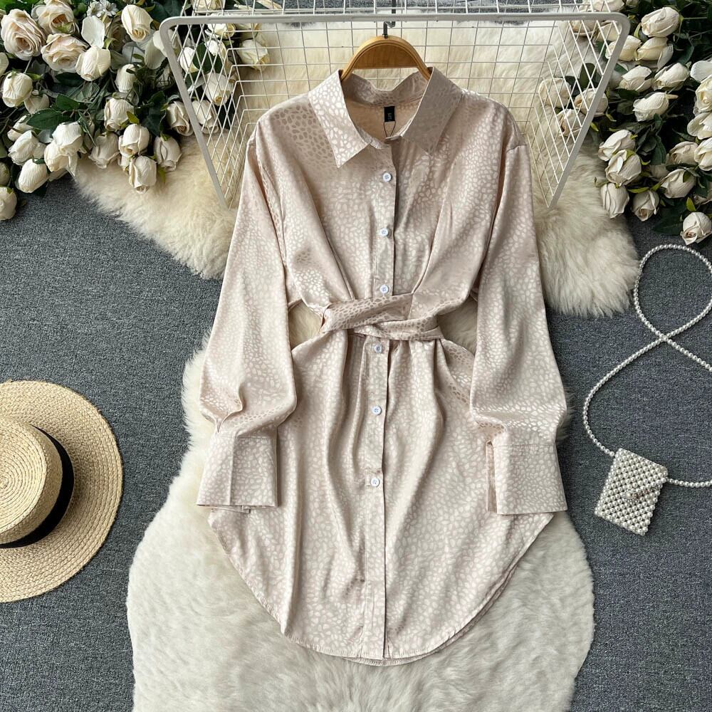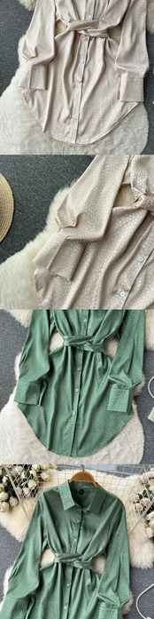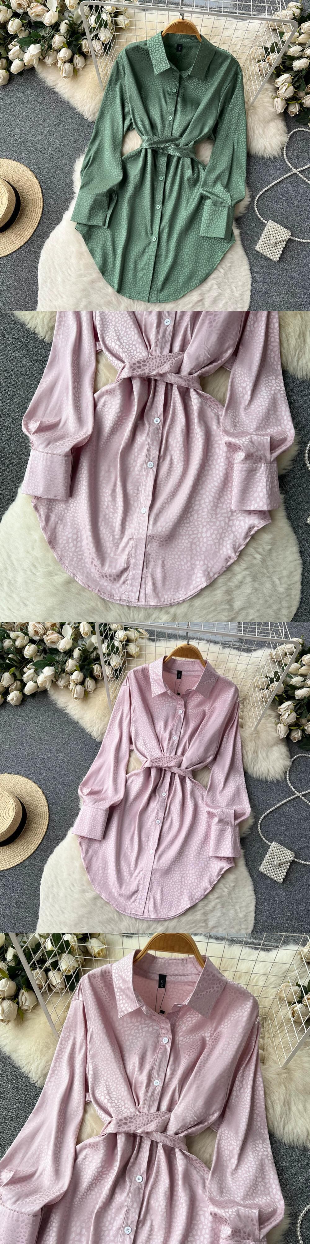 -end 長袖シャツドレス レディース タイウエスト シングルブレスト ボタン カジュアル オールマッチ ショートスカート ミドル丈 シャツドレス ロング lyxaj84845664309