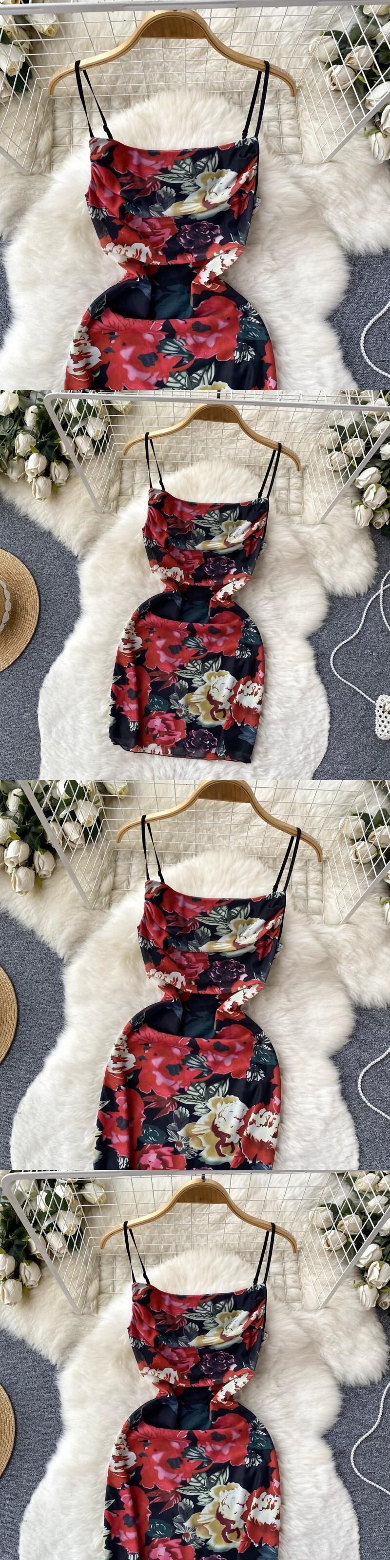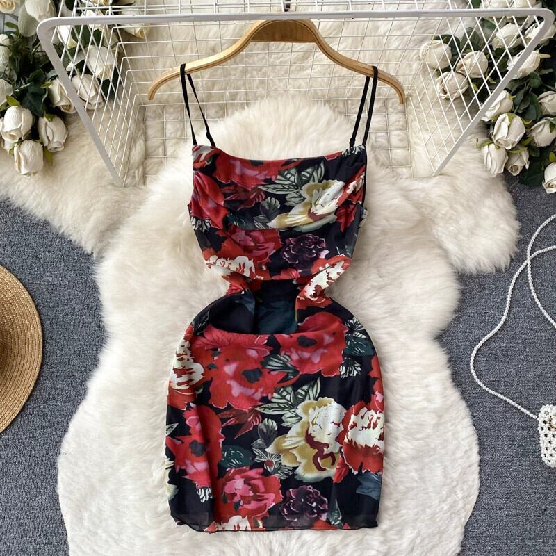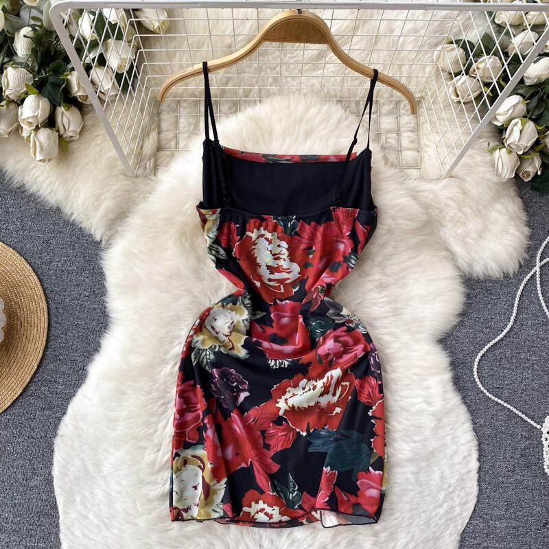 ヨーロッパとアメリカのインセクシーなメッシュプリントサスペンダードレス女性弾性スリムスリム気質バッグヒップスカート エラスティック 伸縮 ヨーロピアン lyxaj45441513299