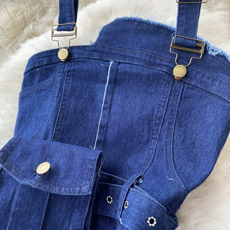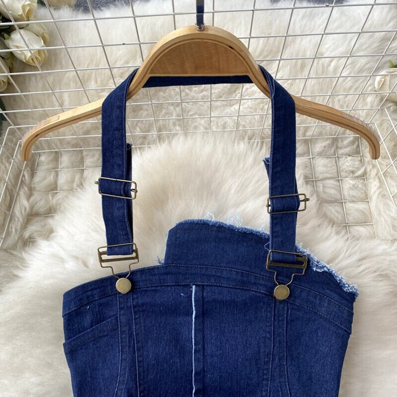 アメリカのぶら下げネックチューブトップデニムスカート女性の夏スリットウエストバッグヒップ生エッジレトロデザインセクシーなドレス サマー 夏物 lyxaj55642722607