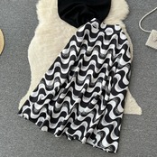 セレブスタイルのライト高級ファッションスーツの女性の夏の半袖ニットトップウォーターリップルハイウエスト痩身スカート ハイウェスト サマー 夏物 lyxaj13899367842