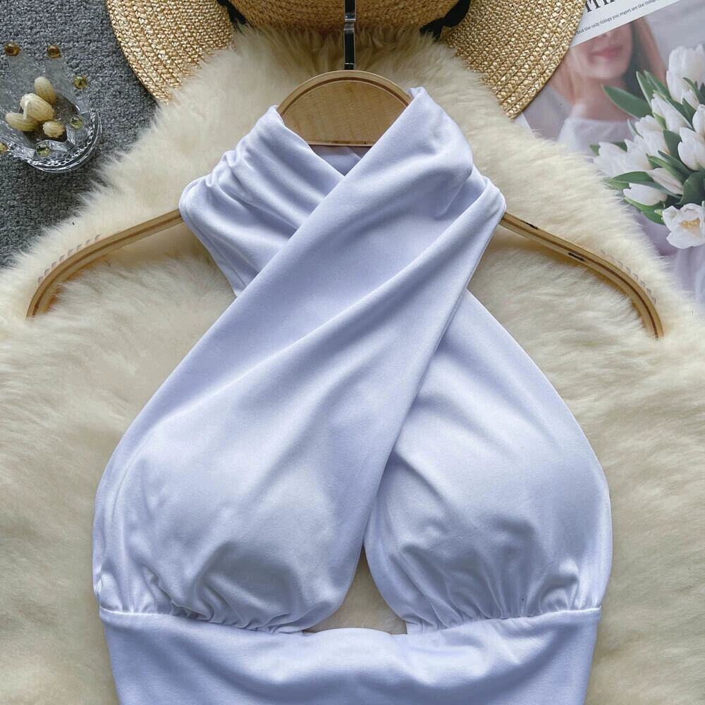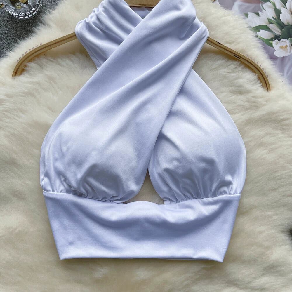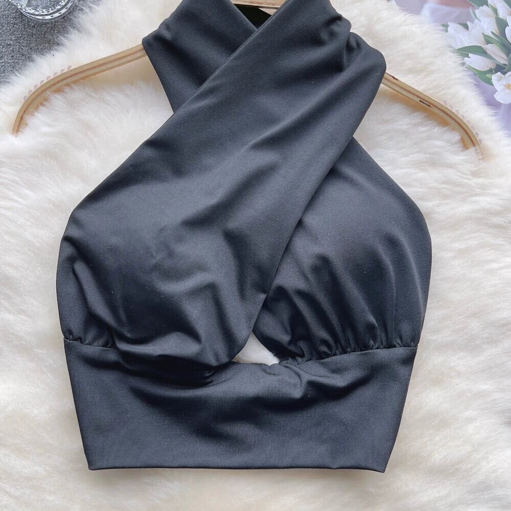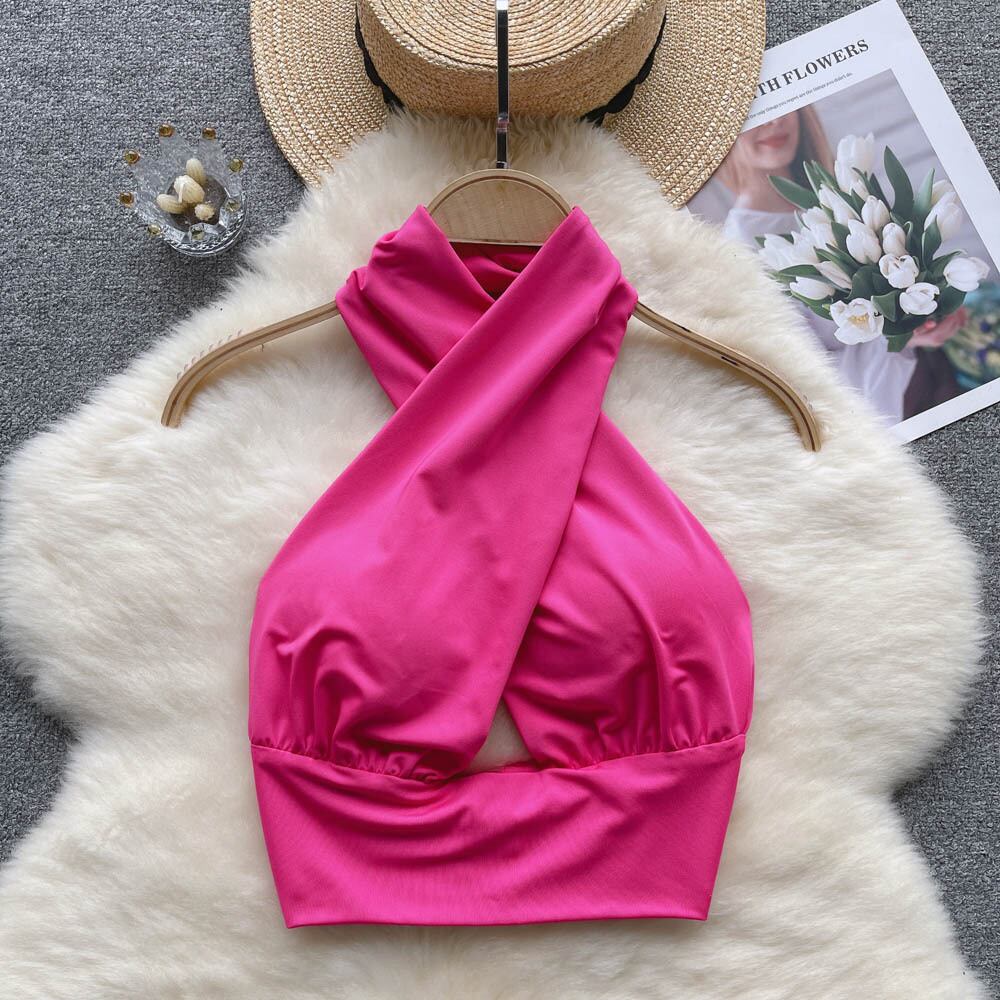 セクシーなクロス中空ハンギングネックベスト女性の夏のヨーロッパとアメリカのインスリムフィットショートシックなホルタートップ サマー 夏物 ヨーロピアン lyxaj31756630094