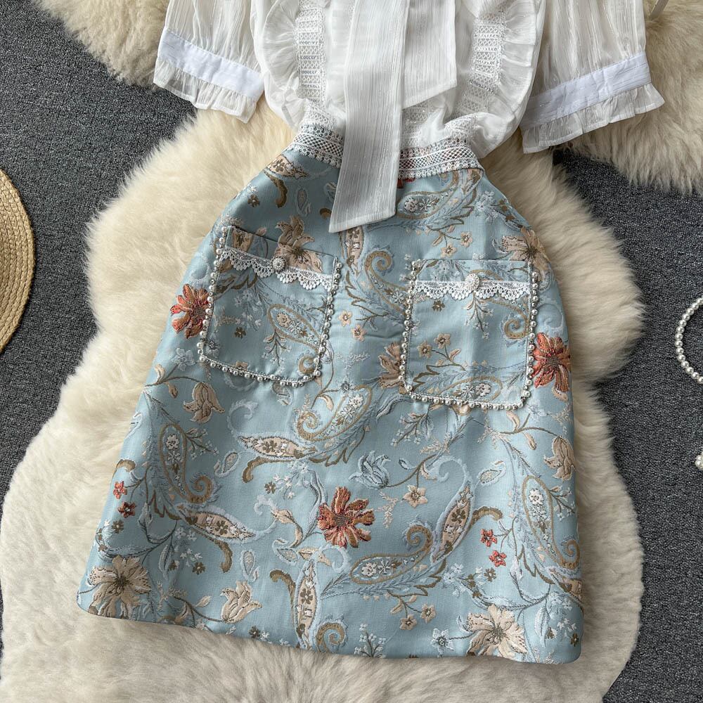 フレンチスタイルの小さな香り重工業刺繍入りビーズドレスの女性の夏のウエスト痩身気質セレブのハイエンド感覚の小さなスカート レッド サマー 夏物 lyxaj38353115351