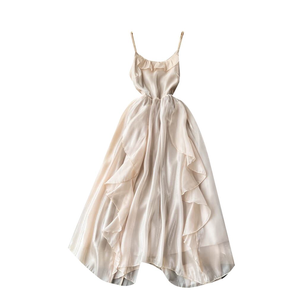 旅行や休暇のスーパーフェアリーシフォンドレスの女性の夏のウエストウエストが細い気質を示す蓮の葉のエッジのオフショルダーサスペンダードレス サマー 夏物 lyxaj60335660270