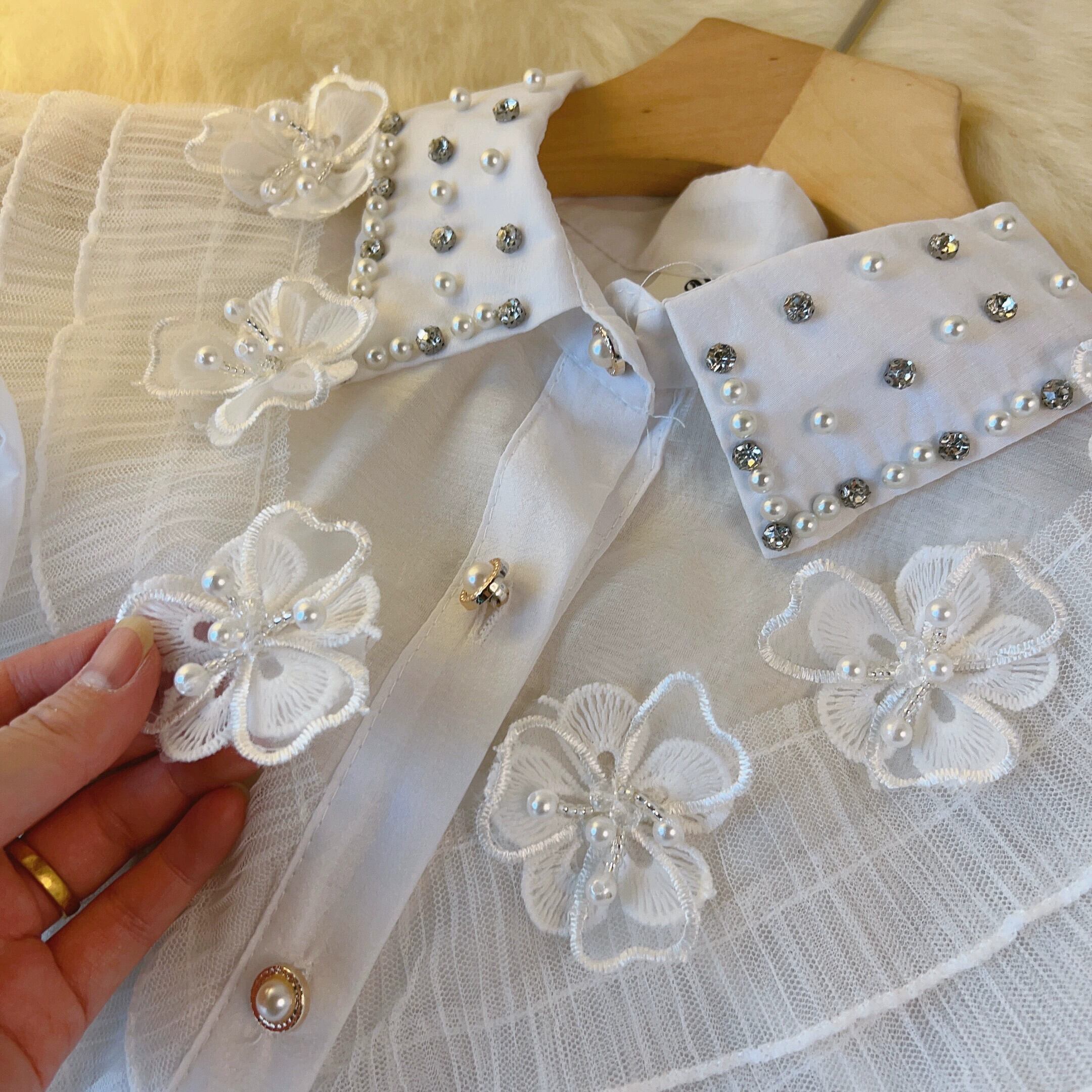 ニッチなデザインセンス気質シフォンカーディガントップレディース夏フランス重工業ダイヤモンドビーズフリルシックシャツ ラッフル サマー 夏物 lyxaj1103354164