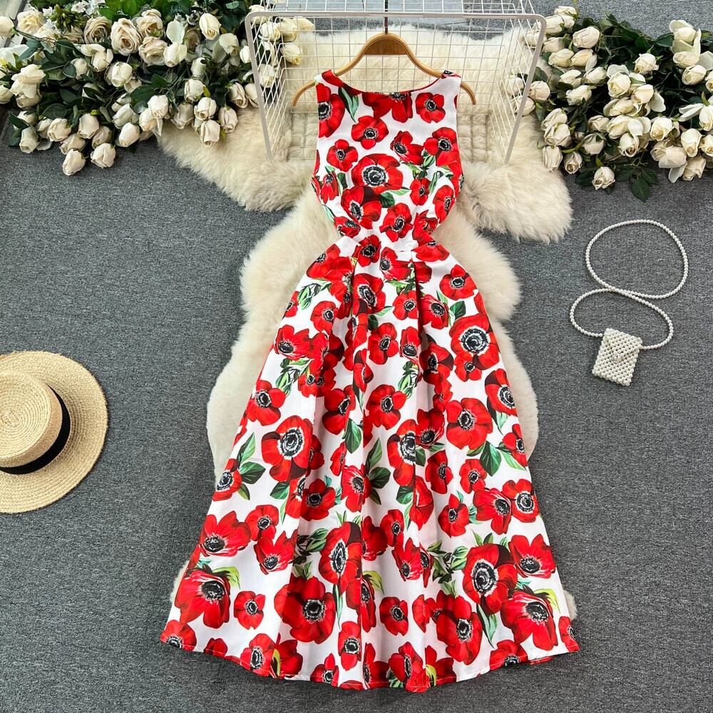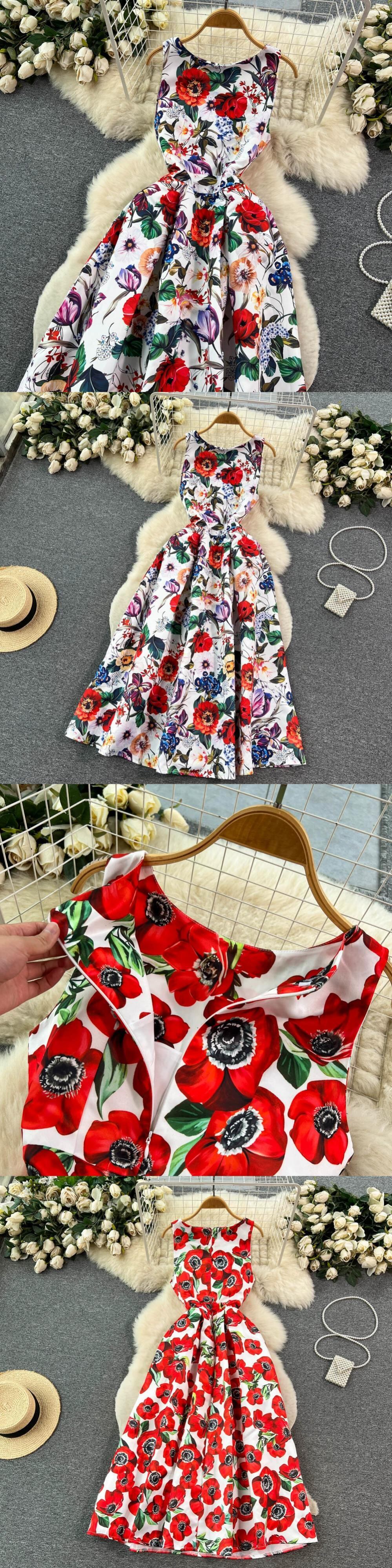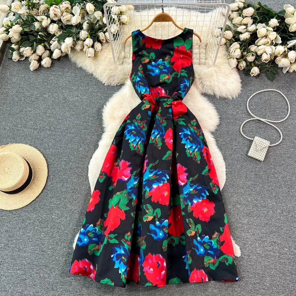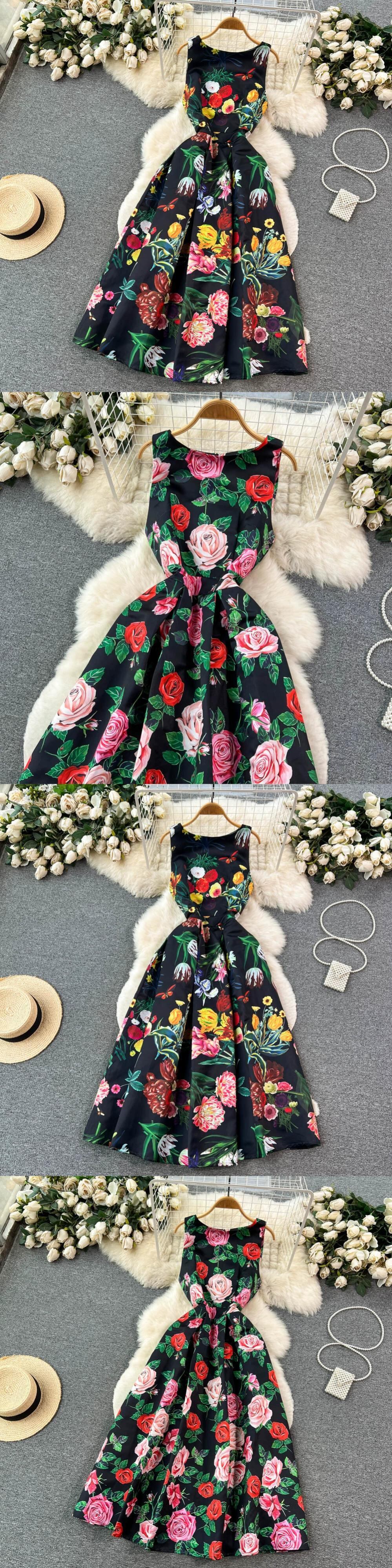 セレブのハイエンドプリントベストドレス女性のサマードレス新しいウエスト痩身気質エレガントなビッグスイングドレススカート 夏物 lyxaj9872151166