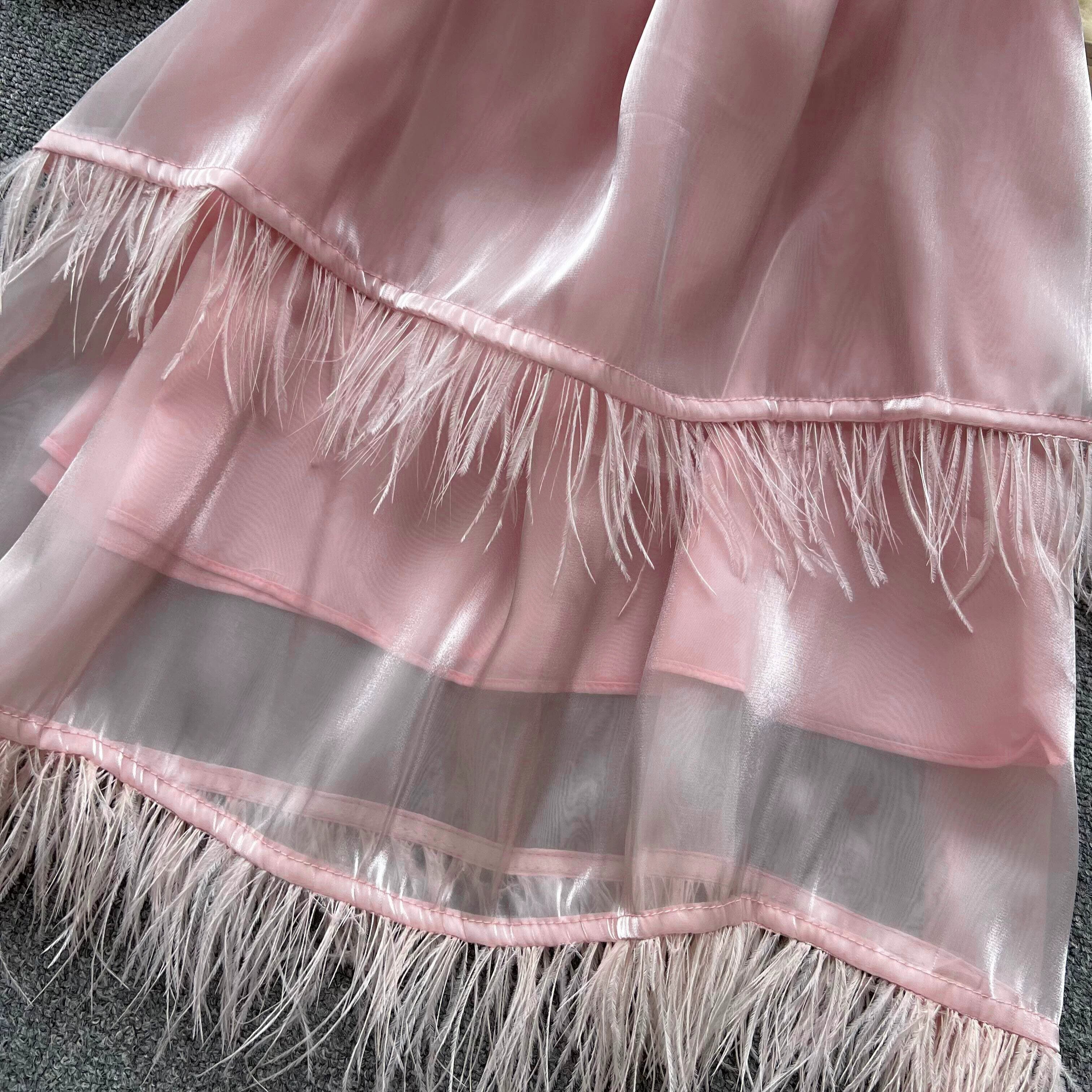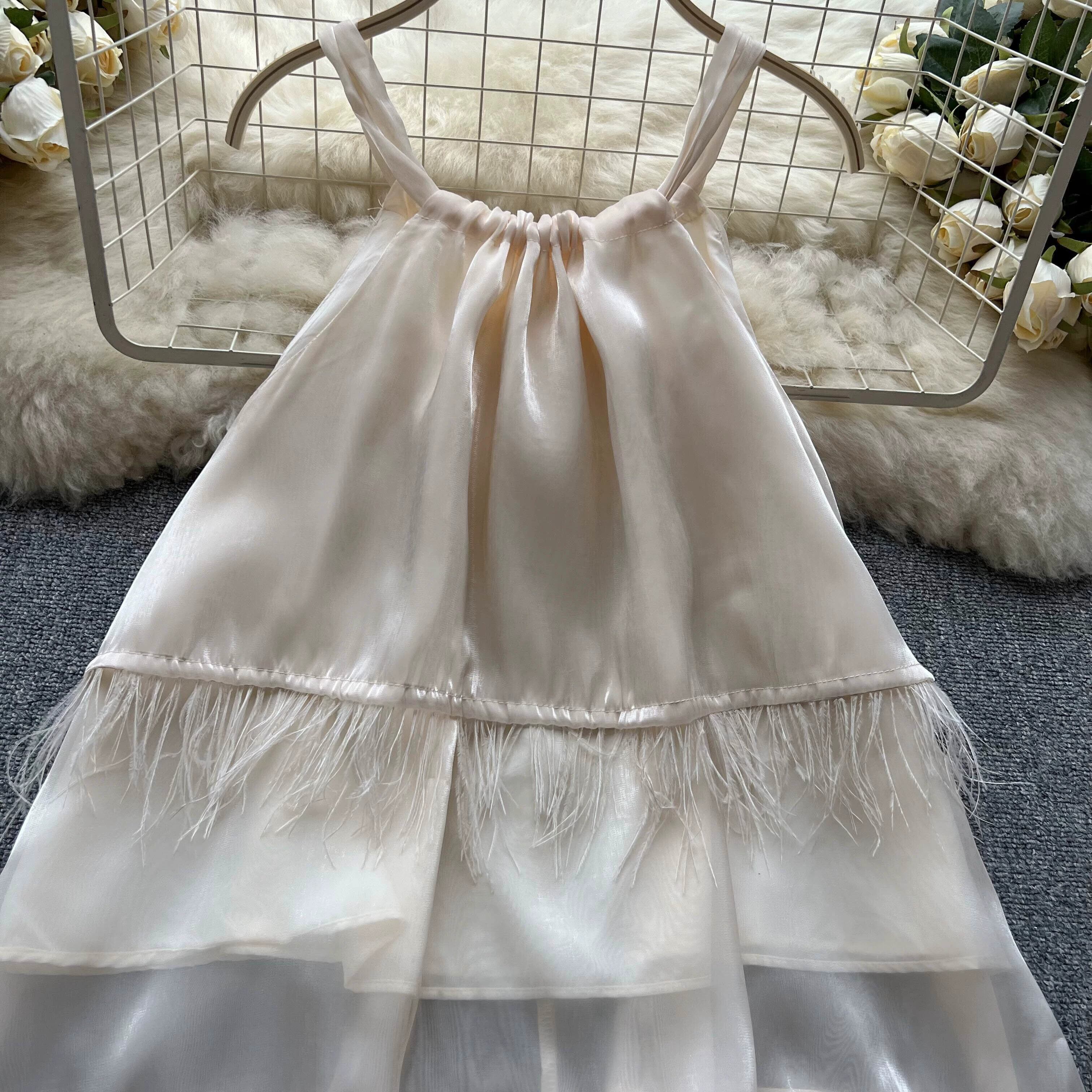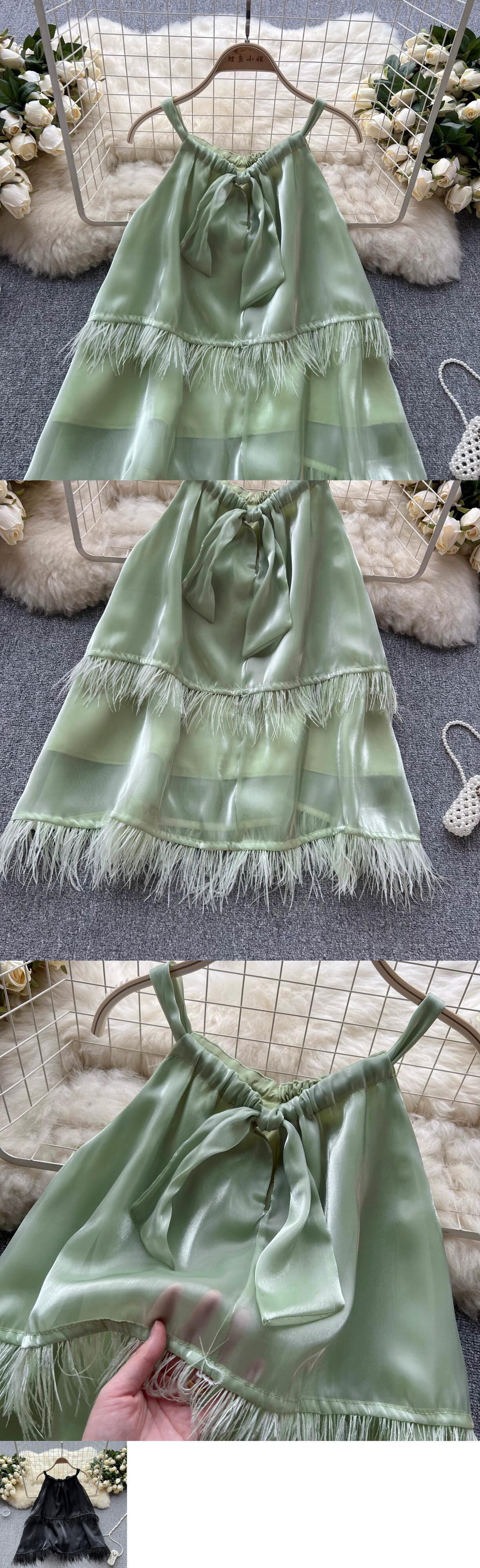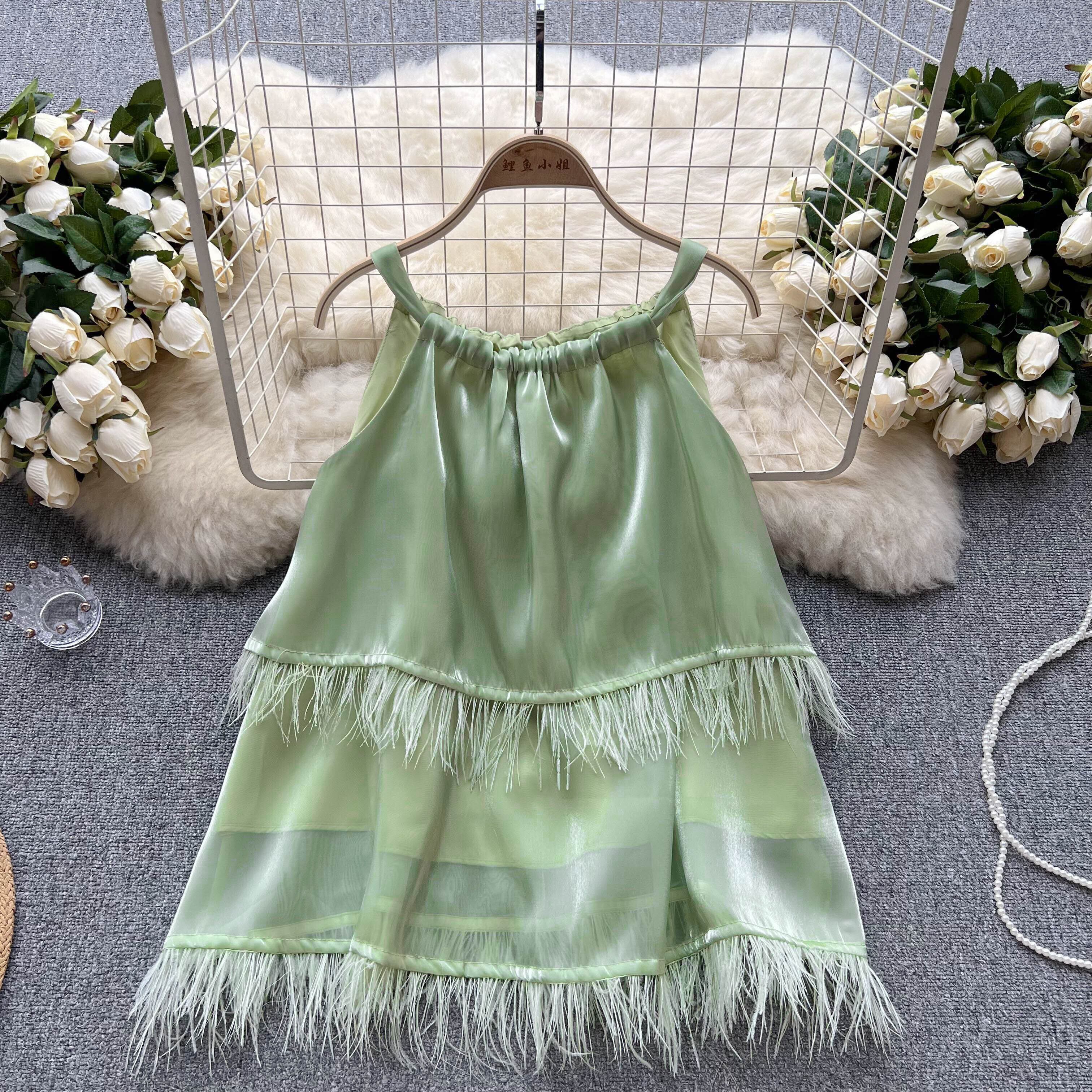 スパイスカレッジスタイルスリングブラウス夏ノースリーブフリンジチュールショートベストデザインシックなトップ女性 サマー 夏物 lyxaj31726058923
