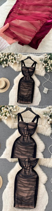 香港スタイルのレトロなメッシュプリーツステッチベルベットチューブトップサスペンダースカートスリムでスリムな気質バッグヒップドレスドレス lyxaj60639206175