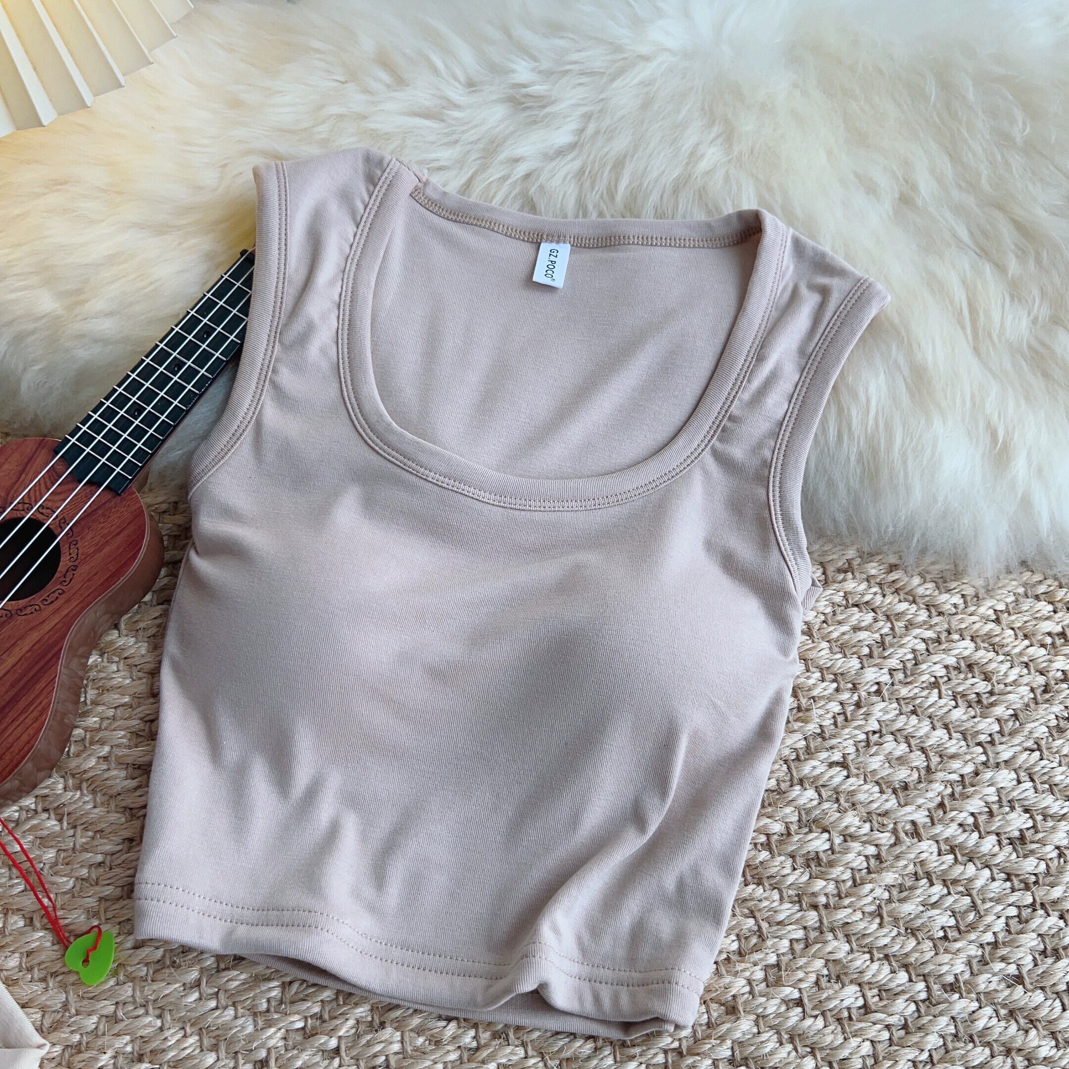 スポーツ小さなベスト女性胸パッド付き夏の新しいスリムフィットオールマッチショートスタイルアウターウェアスクエアカラーノースリーブトップ潮 サマー 夏物 スクウェア lyxaj32087352872