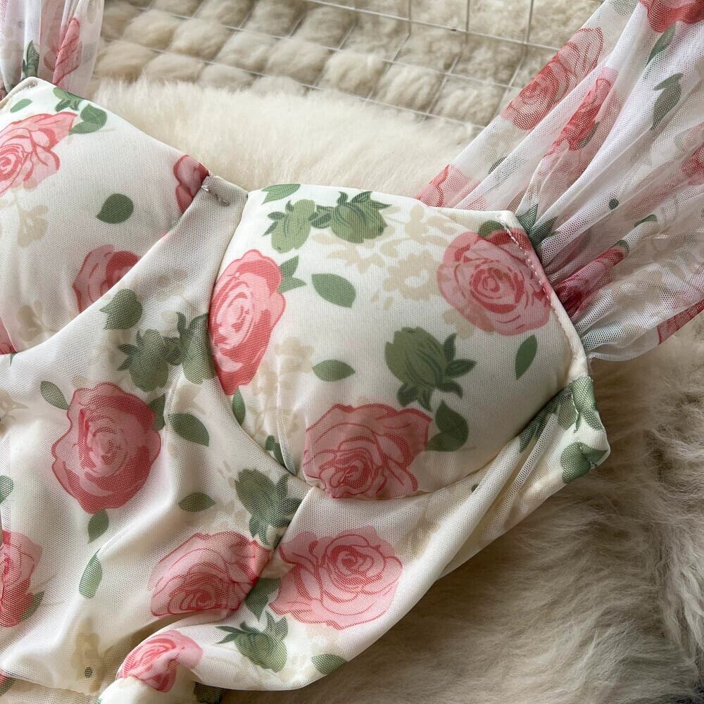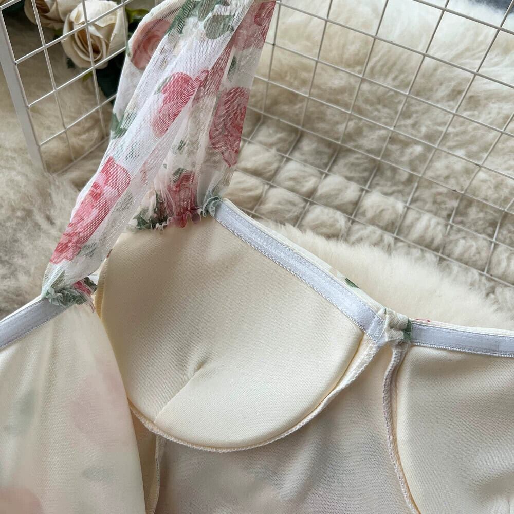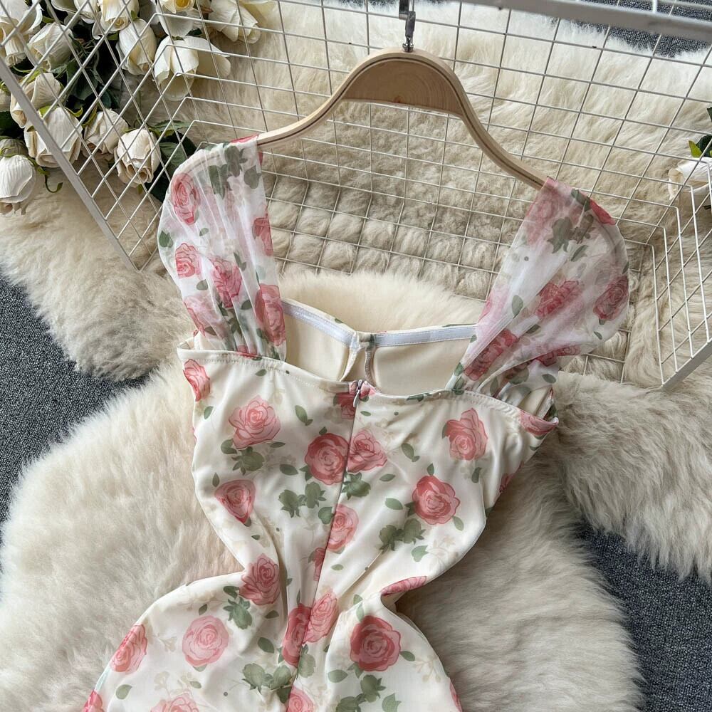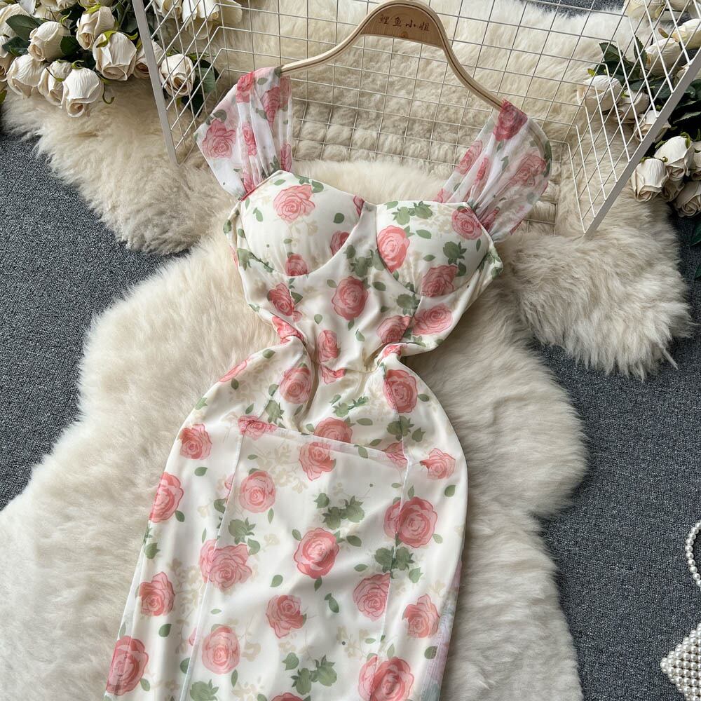 ロマンチックなレトロ花柄スリングドレス女性の夏フレンチスイートウエストネットガーゼスリムマーメイドスカートプリンセスドレス 大人ガーリー スウィート キュート カジュアル サマー 夏物 lyxaj62973306711