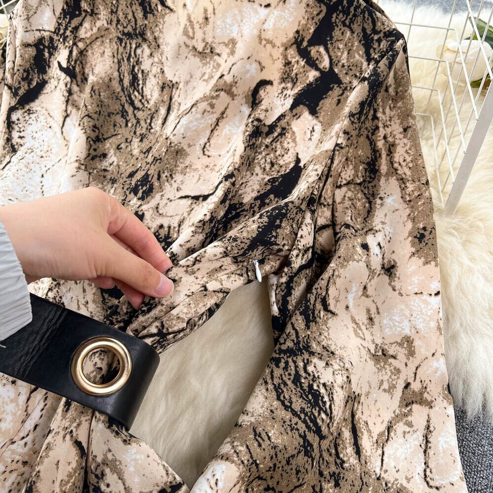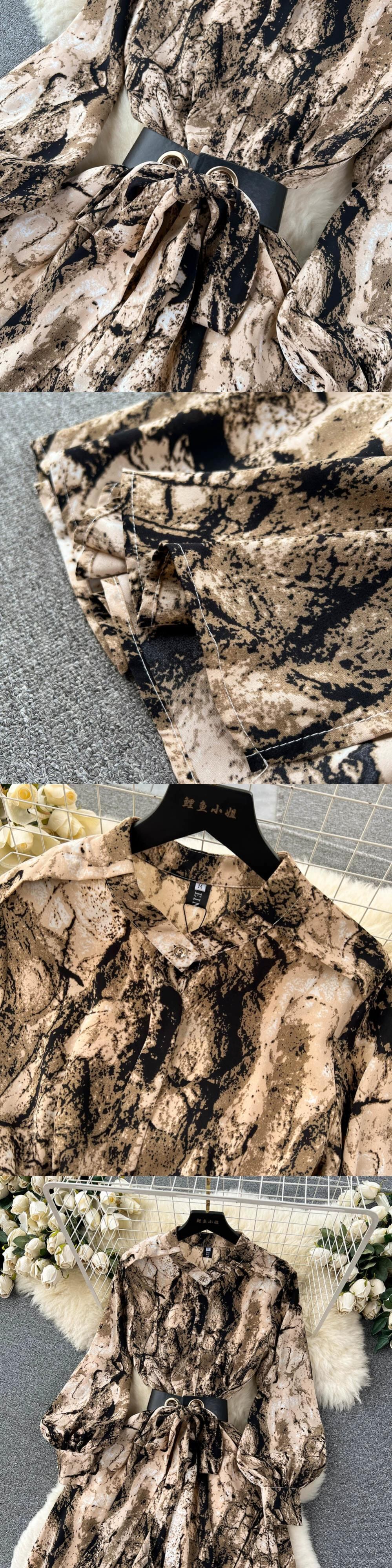 豪華なスタイルのレトロなインクプリントドレスレディース春夏ランタン袖ストラップウエストウエストデザイン感大振りドレス ランタンスリーブ スプリング 春物 サマー 夏物 lyxaj84298148502