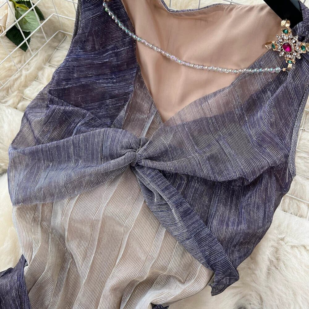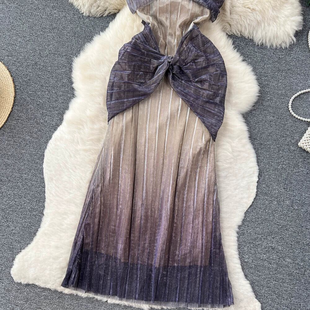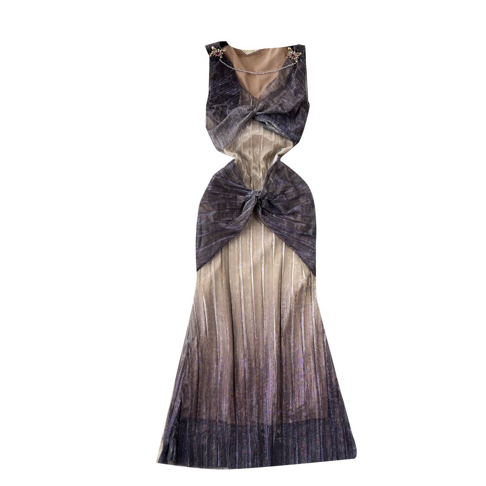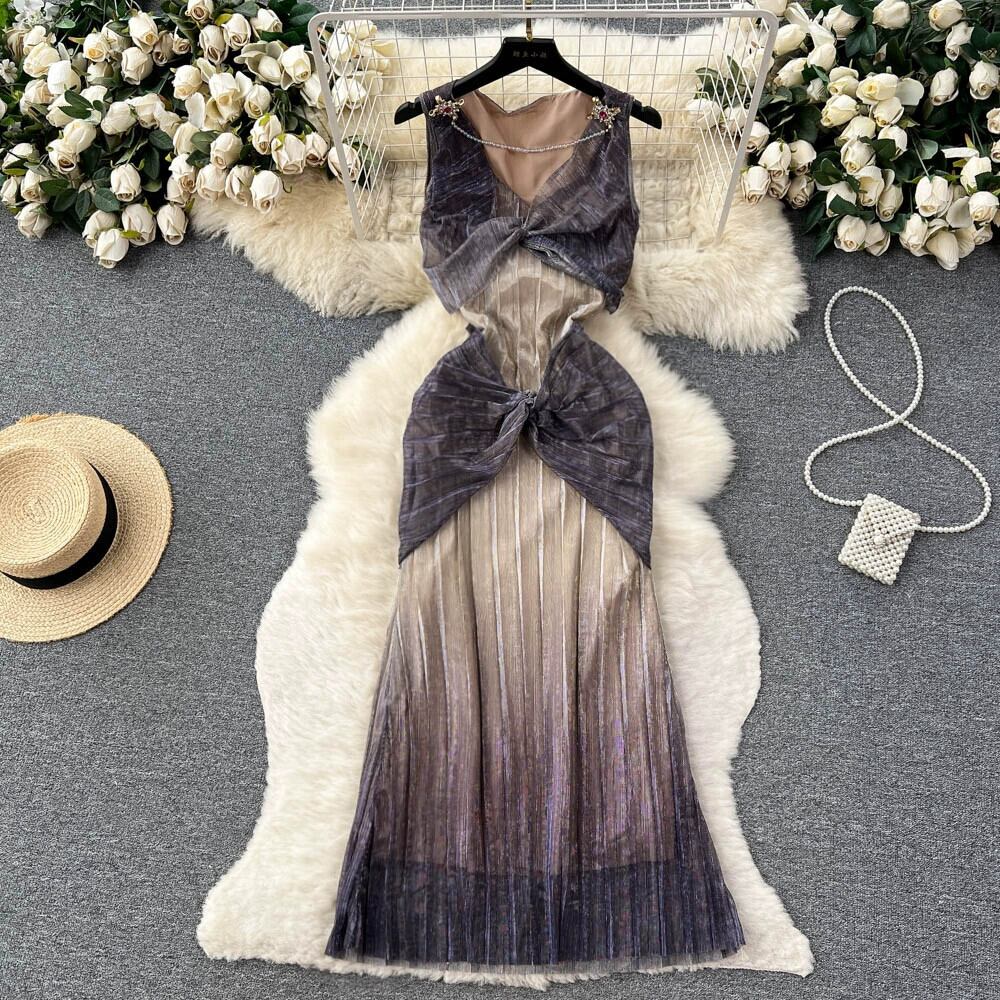 フレンチロマンチックなレトロな雰囲気のドレスレディース夏スリムウエストエレガントなグラデーションカラーメッシュドレスロングスカート サマー 夏物 lyxaj51326009007