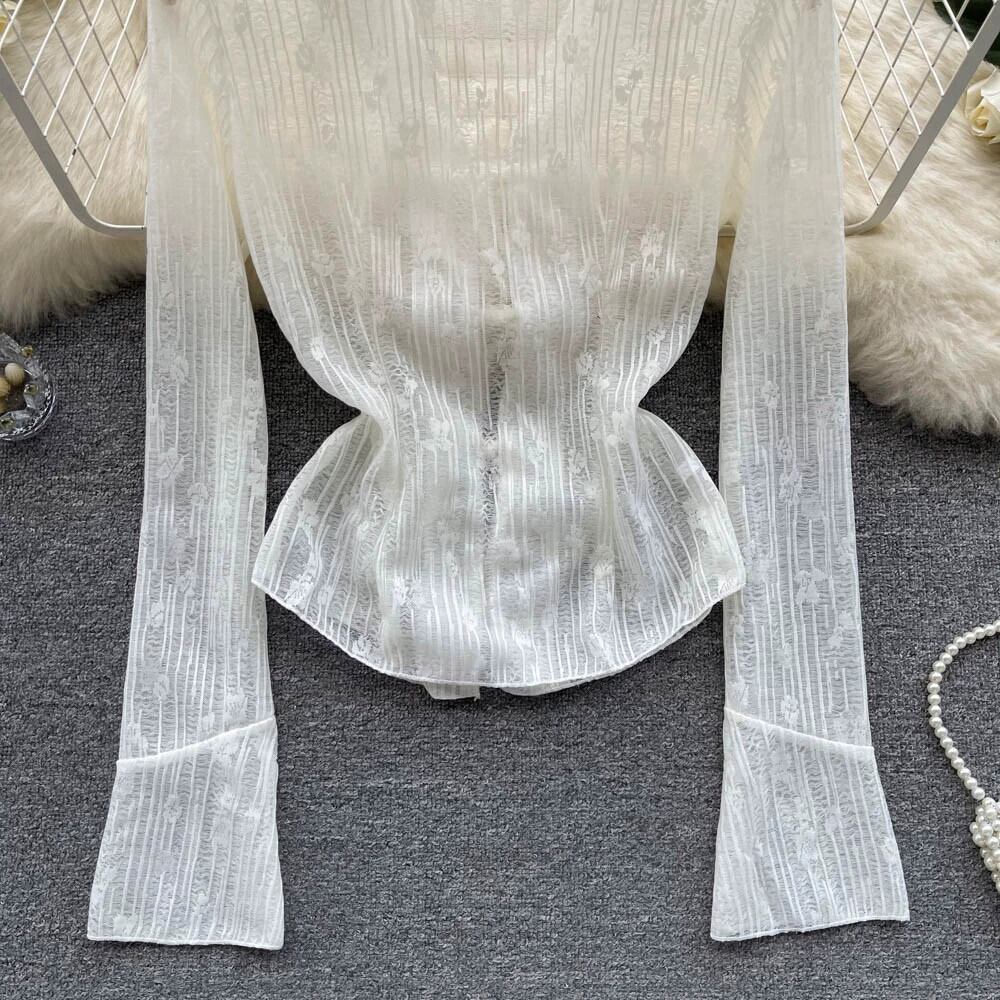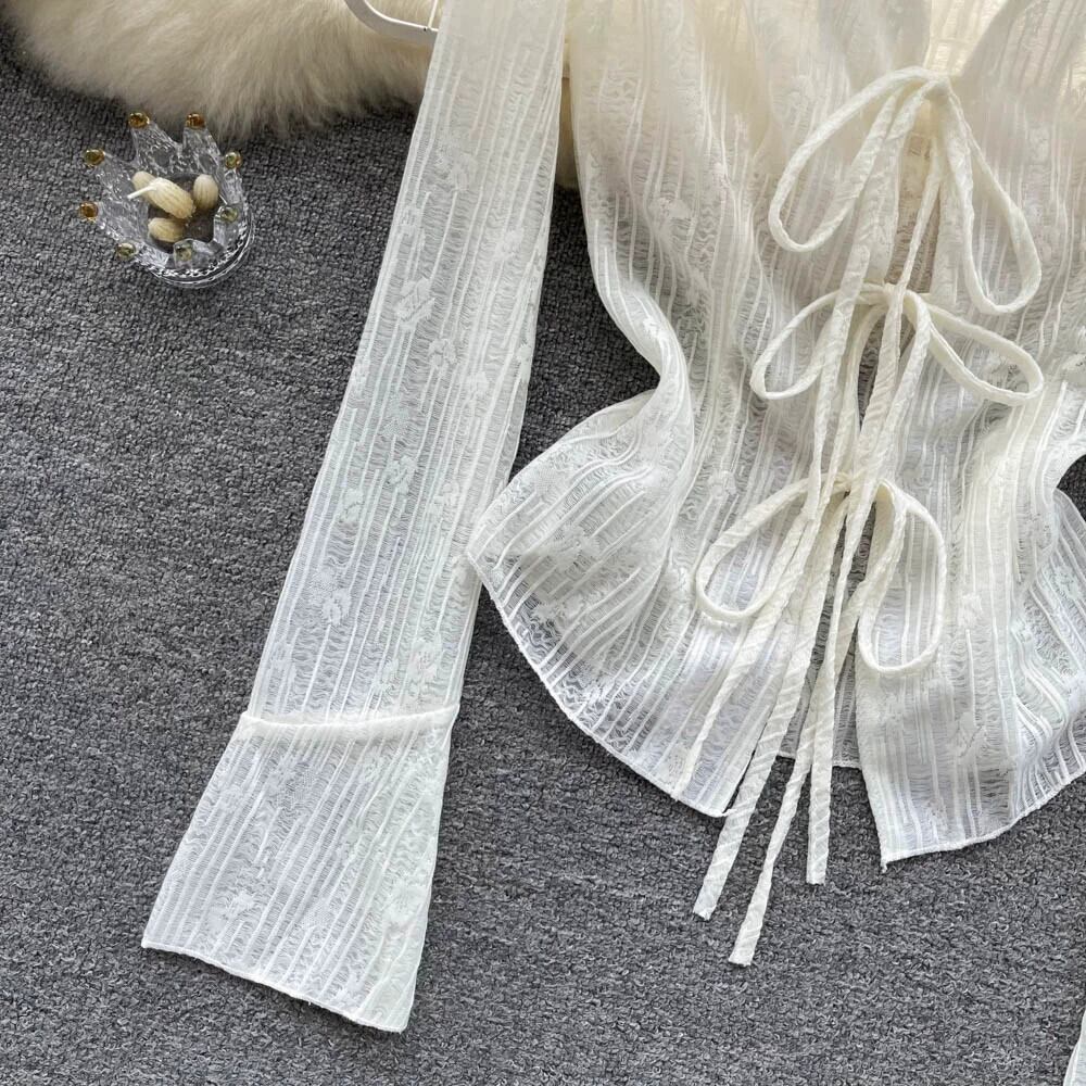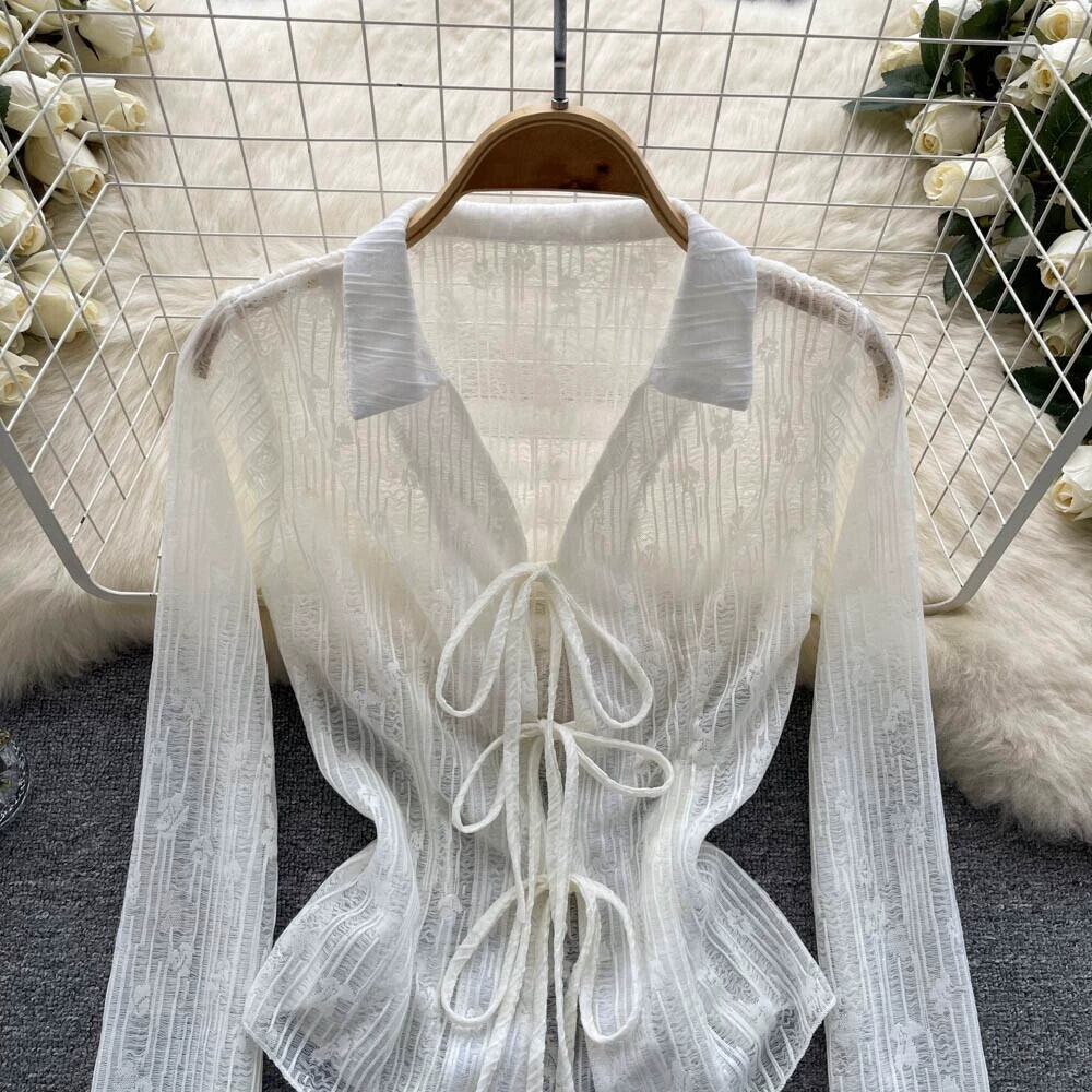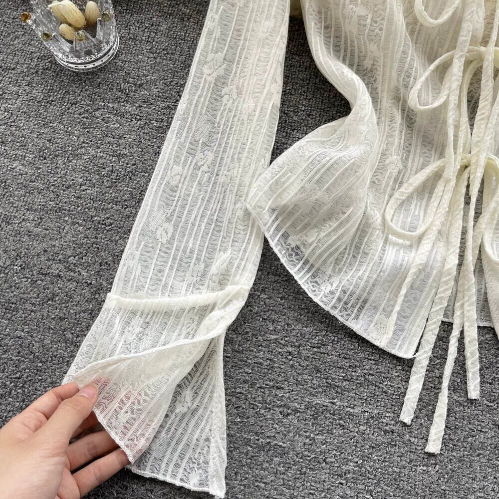 ドーパミントップ女性の夏の新しい純粋な欲望マイクロホーン長袖ストラップデザインチュール日焼け止めカーディガン ロング サマー 夏物 ピュア lyxaj80833287932