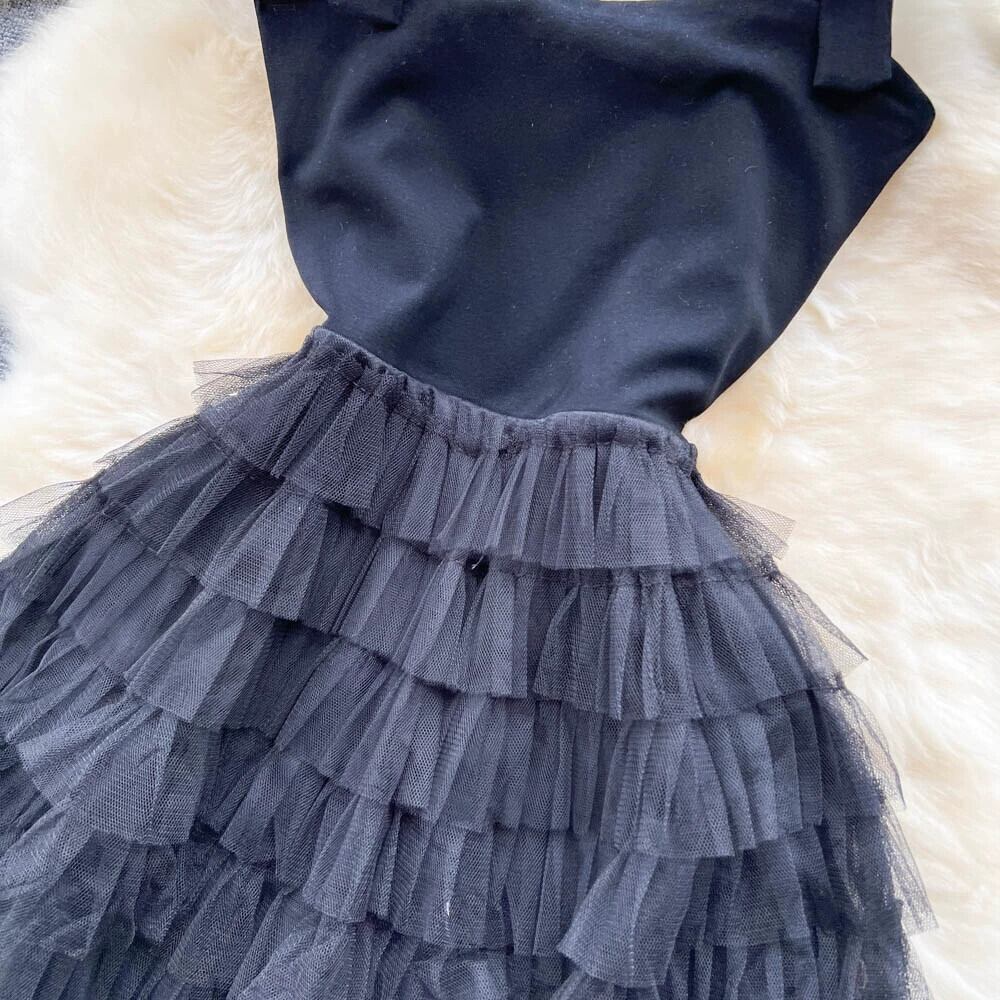 フレンチヘップバーンスタイル黒ストラップサスペンダードレス女性の夏のハイエンドデザインケーキスカートチュチュロングスカート ブラック サマー 夏物 パニエ ペチコート lyxaj88537478800