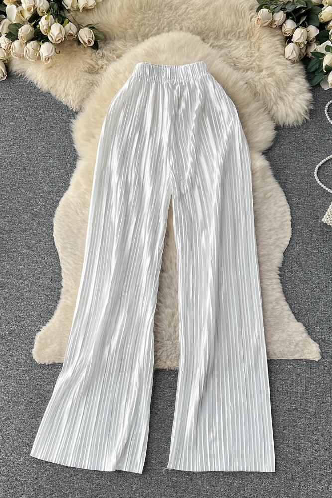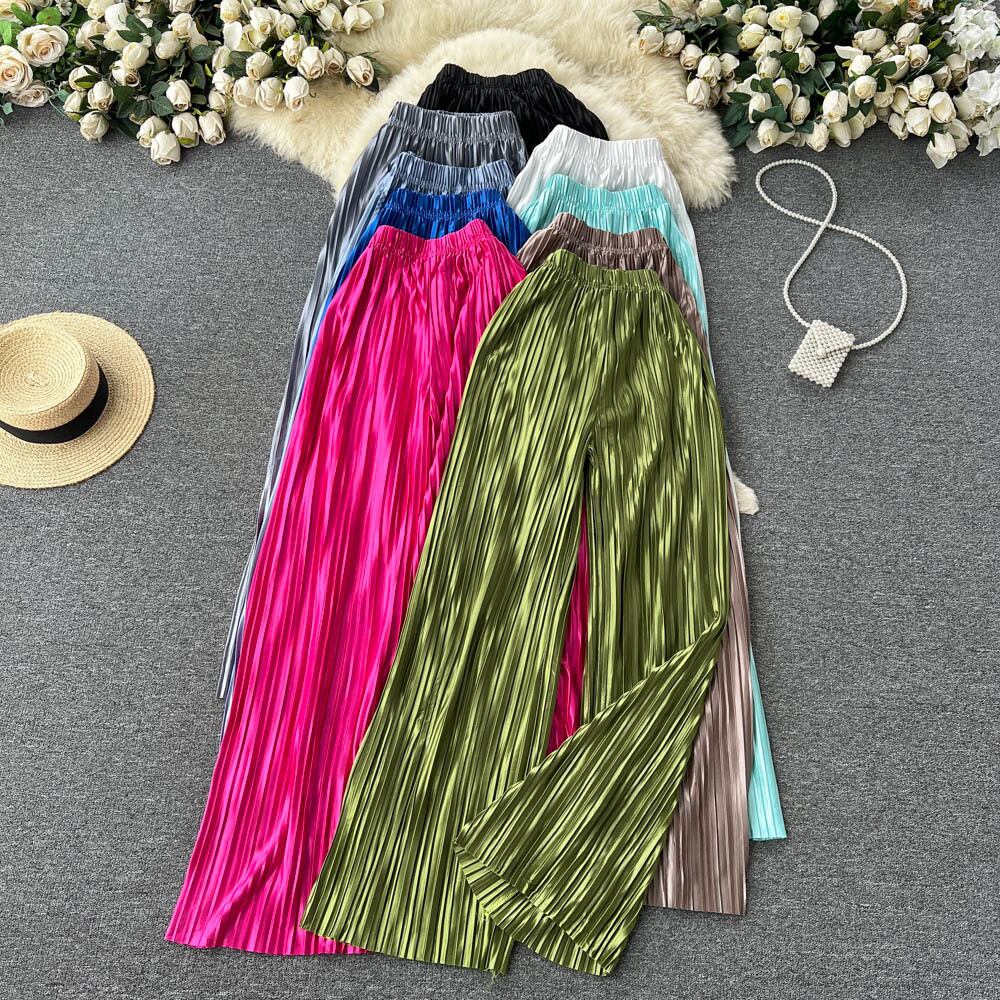 無地明るい顔ワイドレッグパンツ女性の夏怠惰な風ドレープルーズカジュアルパンツ質感感プリーツオールマッチパンツ サマー 夏物 ソリッドカラー lyxaj85985600447