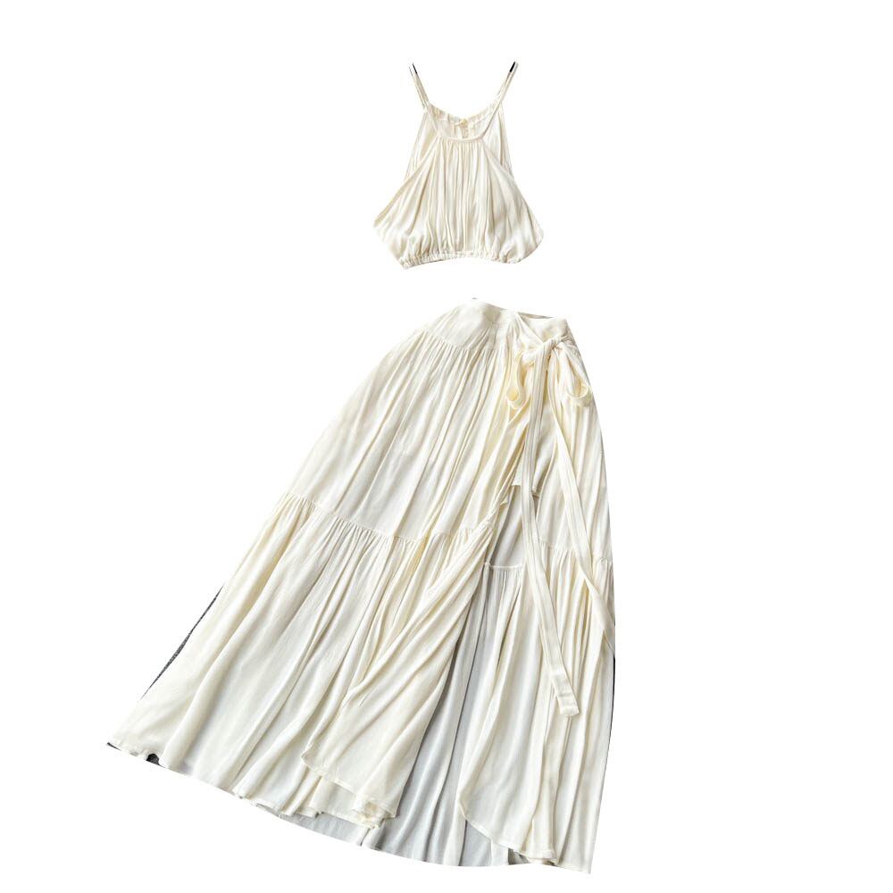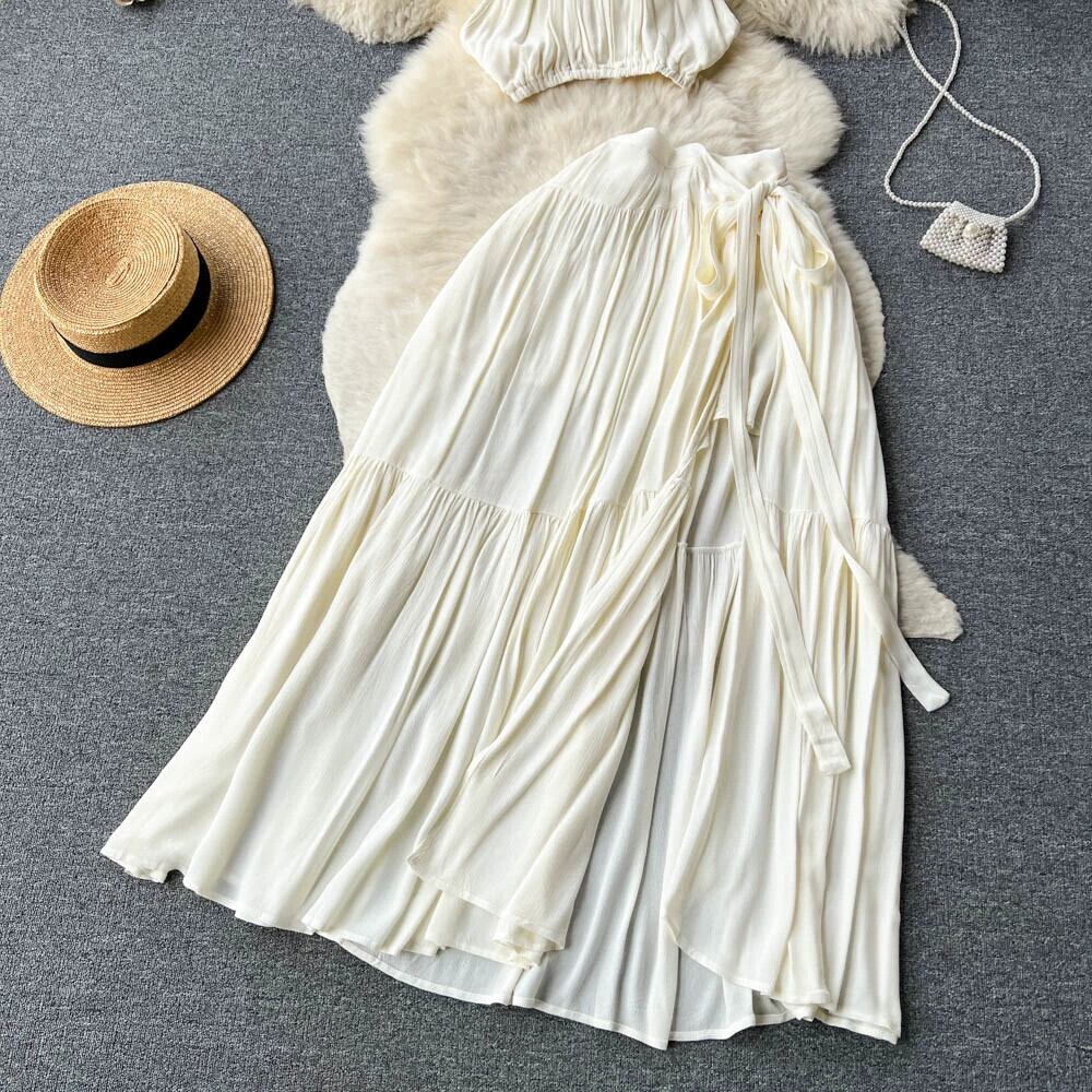 シーサイドホリデースタイルスーツレディースサマースリングチューブトップクロップトップ+カジュアルルーズストラップミドル丈スカート 夏物 lyxaj3220380783