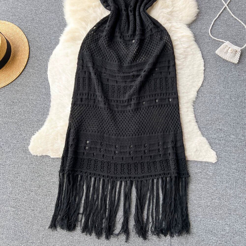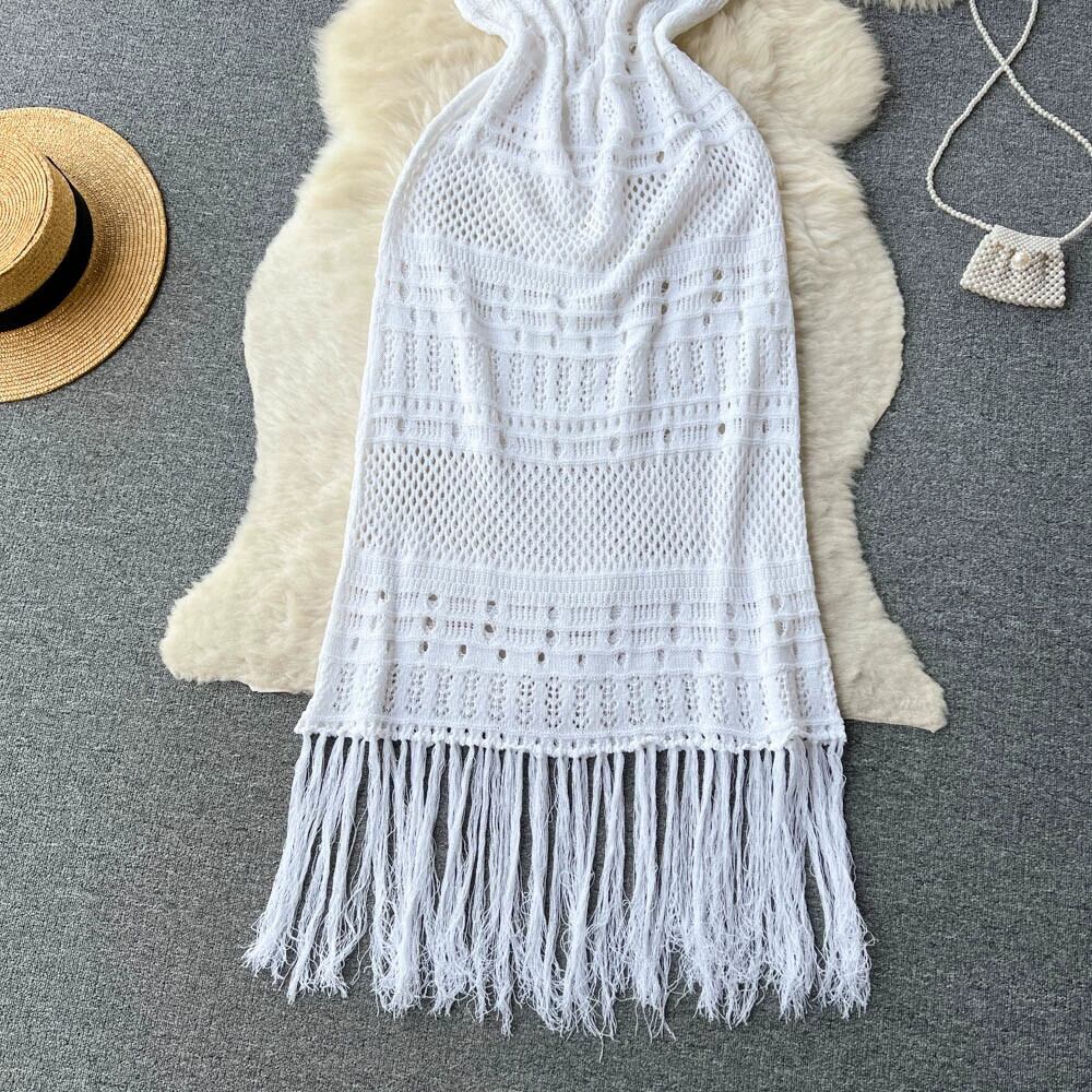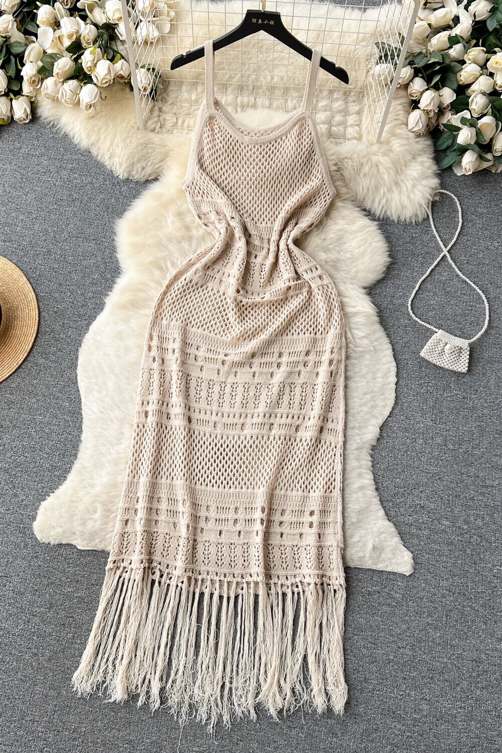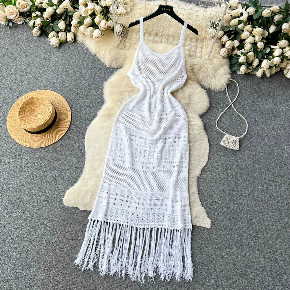 シックなレトロな中空フックフラワーサスペンダースカートレディースミッドレングスアウターウェアブラウスフリンジ付きホリデードレス フラワーデザイン lyxaj20467445364