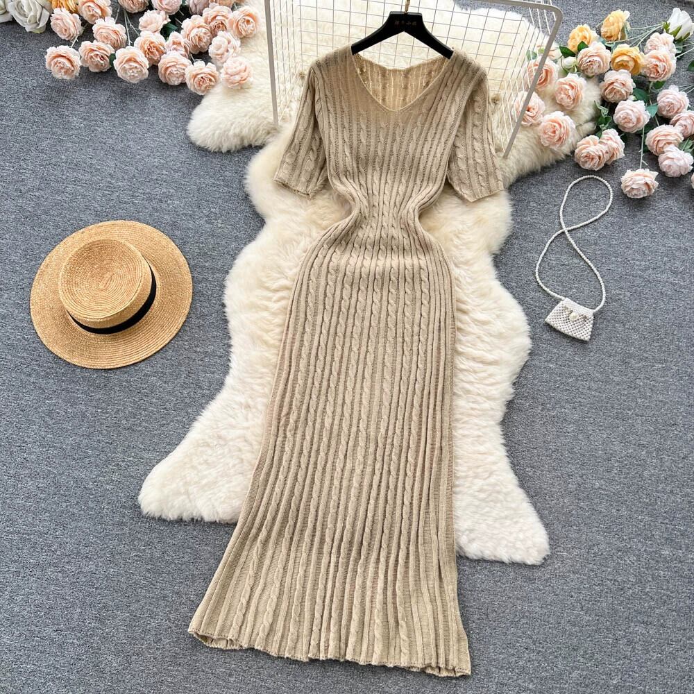 セレブスタイルニット麻柄ドレス女性の夏のウエスト痩身軽い高級フランスのハイエンドロングスカート サマー 夏物 lyxaj47486436257