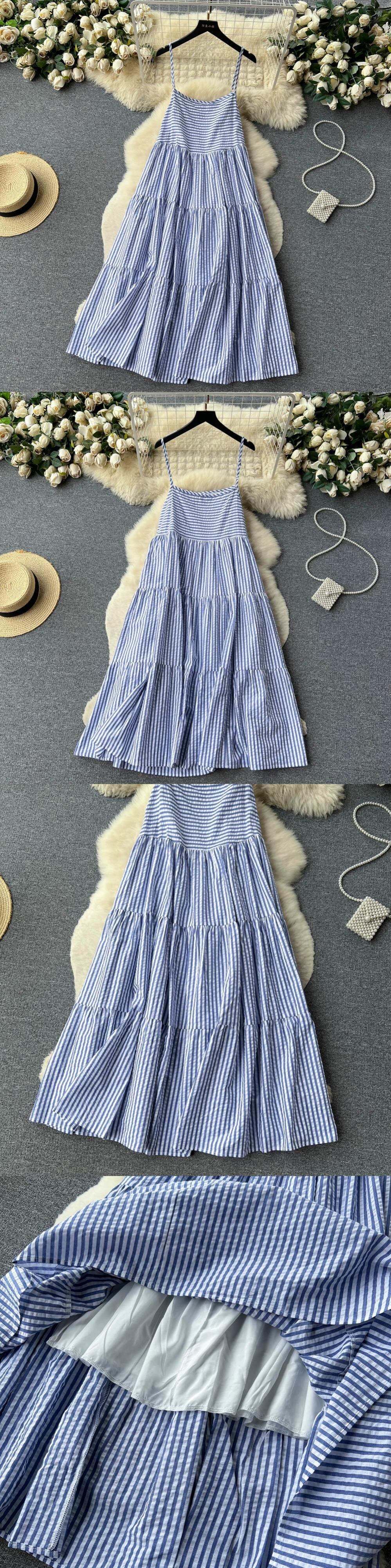 フレンチスイート怠惰な風ストライプサスペンダードレス女性の夏の薄いセクションルーズカジュアルな海辺の休日の妖精のスカート 大人ガーリー スウィート キュート サマー 夏物 lyxaj97932633531