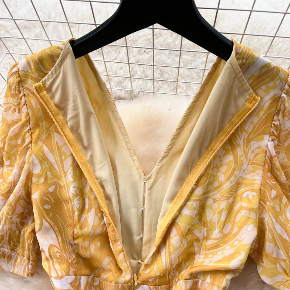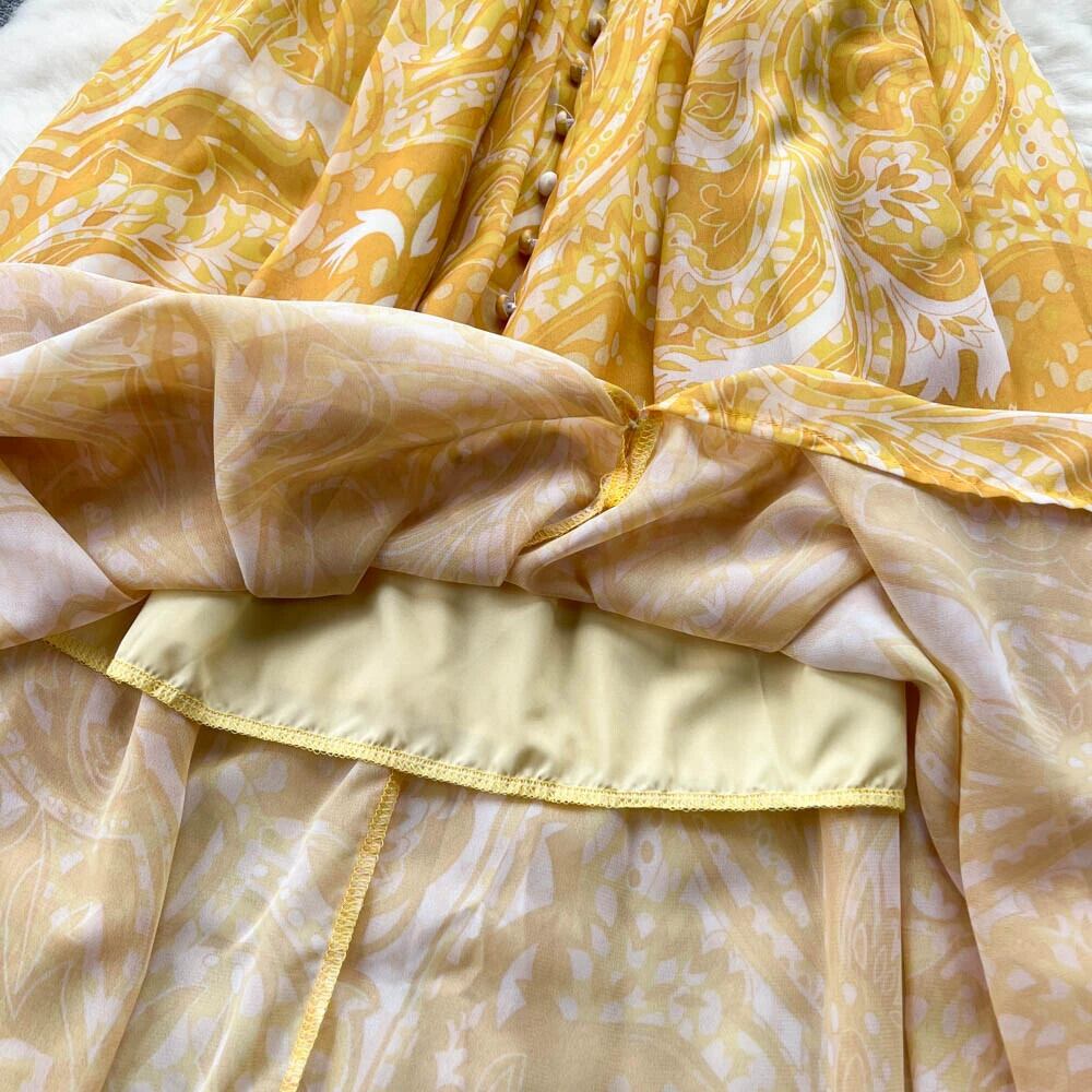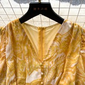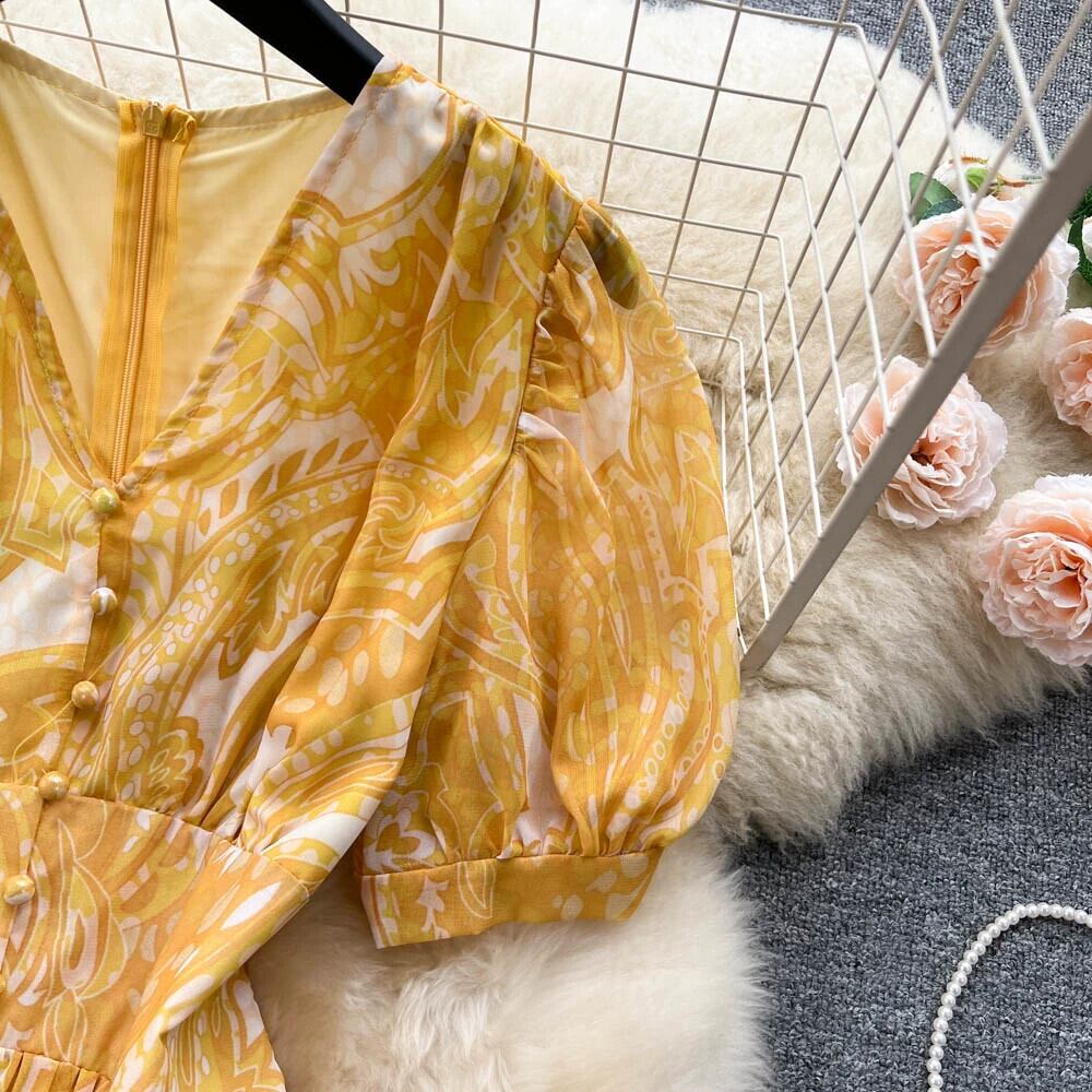 フレンチレトロスタイルの花柄ドレス女性の夏のウエストスリムパフスリーブシングルブレスト甘い休暇ビーチドレス 大人ガーリー スウィート キュート カジュアル サマー 夏物 lyxaj2649439207