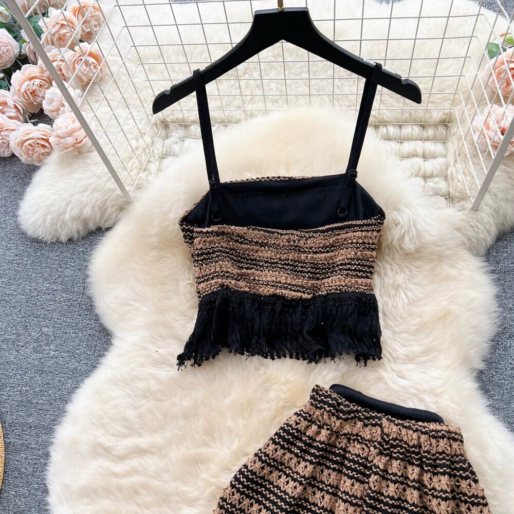 ホリデーエスニックスタイルスーツ女性夏テルストライプスモールストラップチューブトップベスト+ハイウエストミッドレングススカート ハイウェスト サマー 夏物 lyxaj83863059964