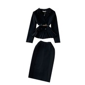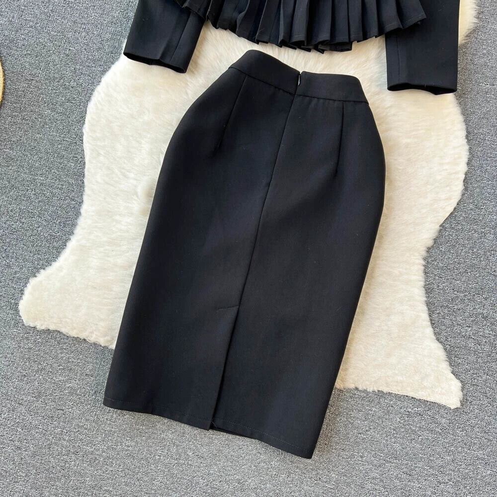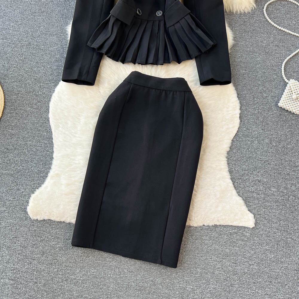 フランスの高級スーツスカート女性ウエストプリーツ長袖トップ+ハイウエストバッグヒップスカート2枚 ハイウェスト ロング lyxaj70735710258