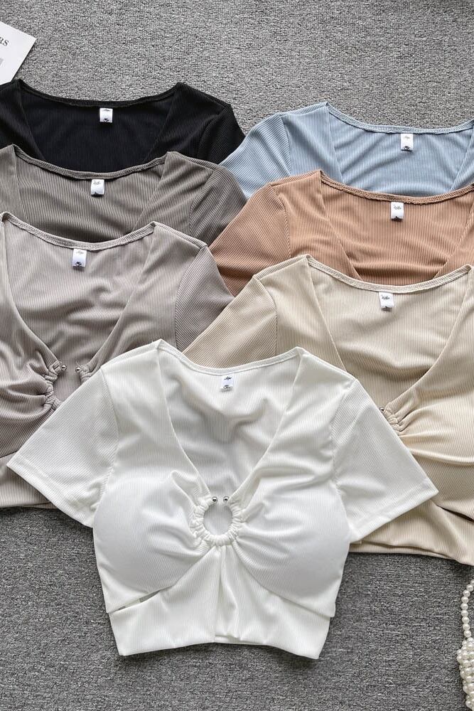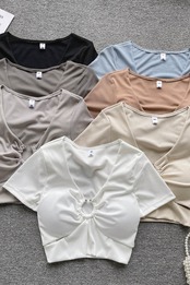 Pure Desire Spice Girl へそニットショートシャツ レディース 夏 セクシー Vネック 中空スリムボディス 胸パッド付き サマー 夏物 lyxaj99297948865