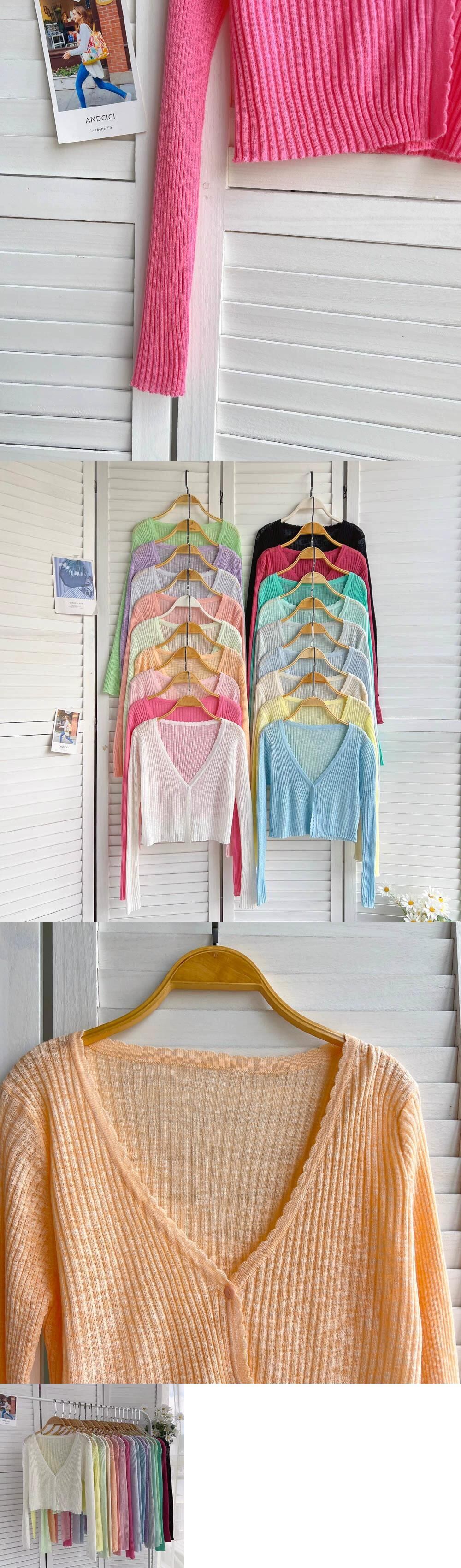 甘い気質の薄い V ネックニットセーター女性の夏の 2023 新しい日焼け止めカーディガンとショート空調シャツ 大人ガーリー スウィート キュート カジュアル サマー 夏物 Vネック lyxaj70213855682
