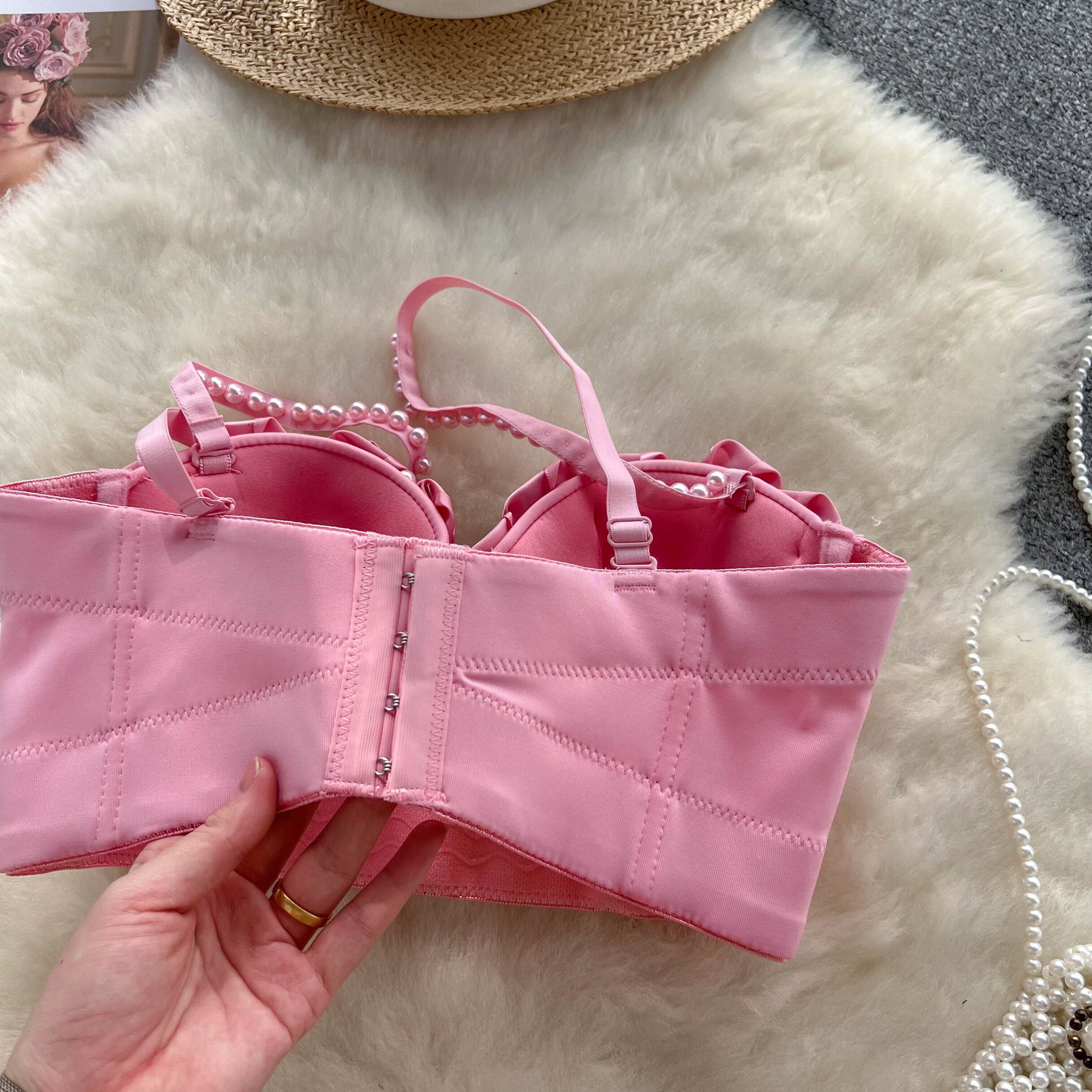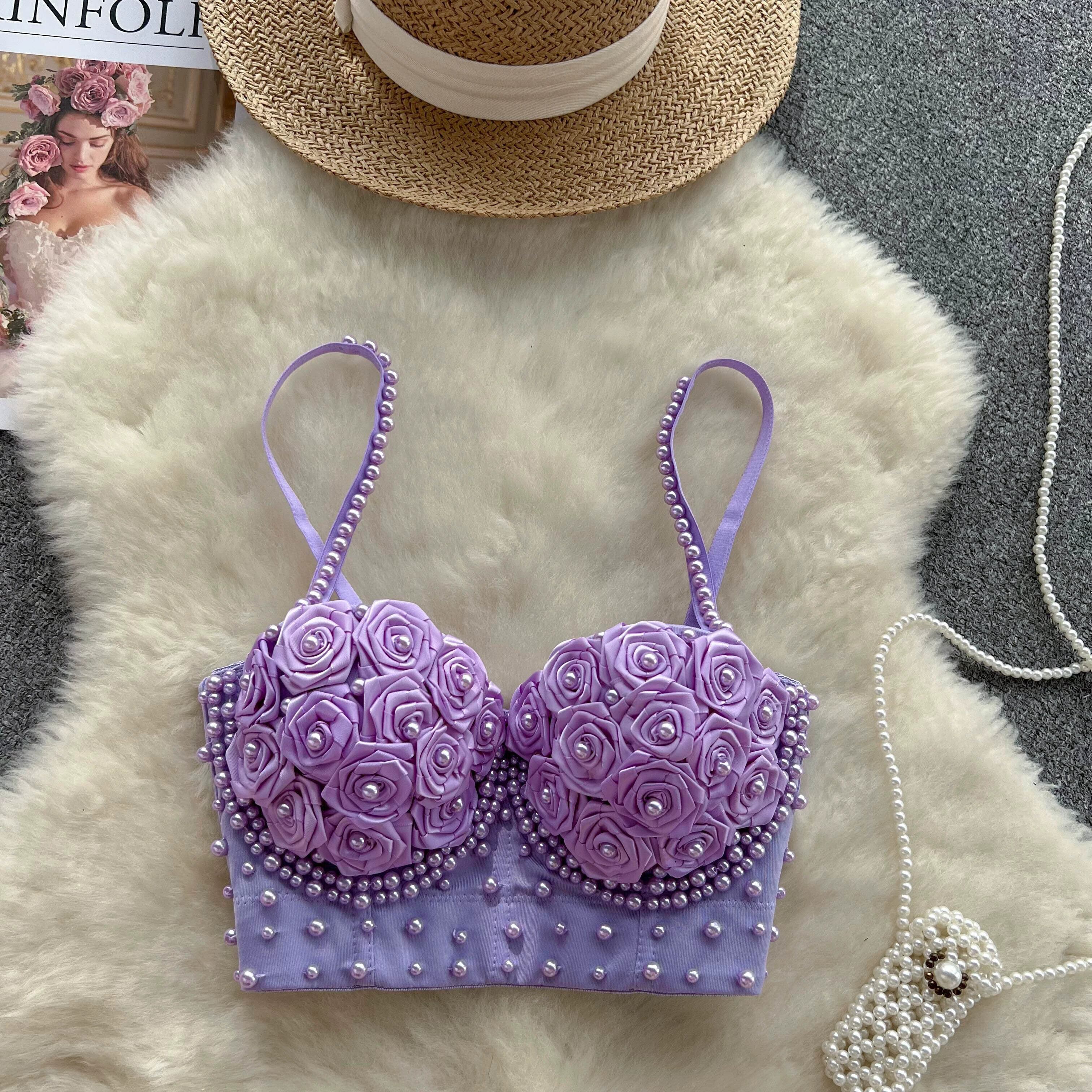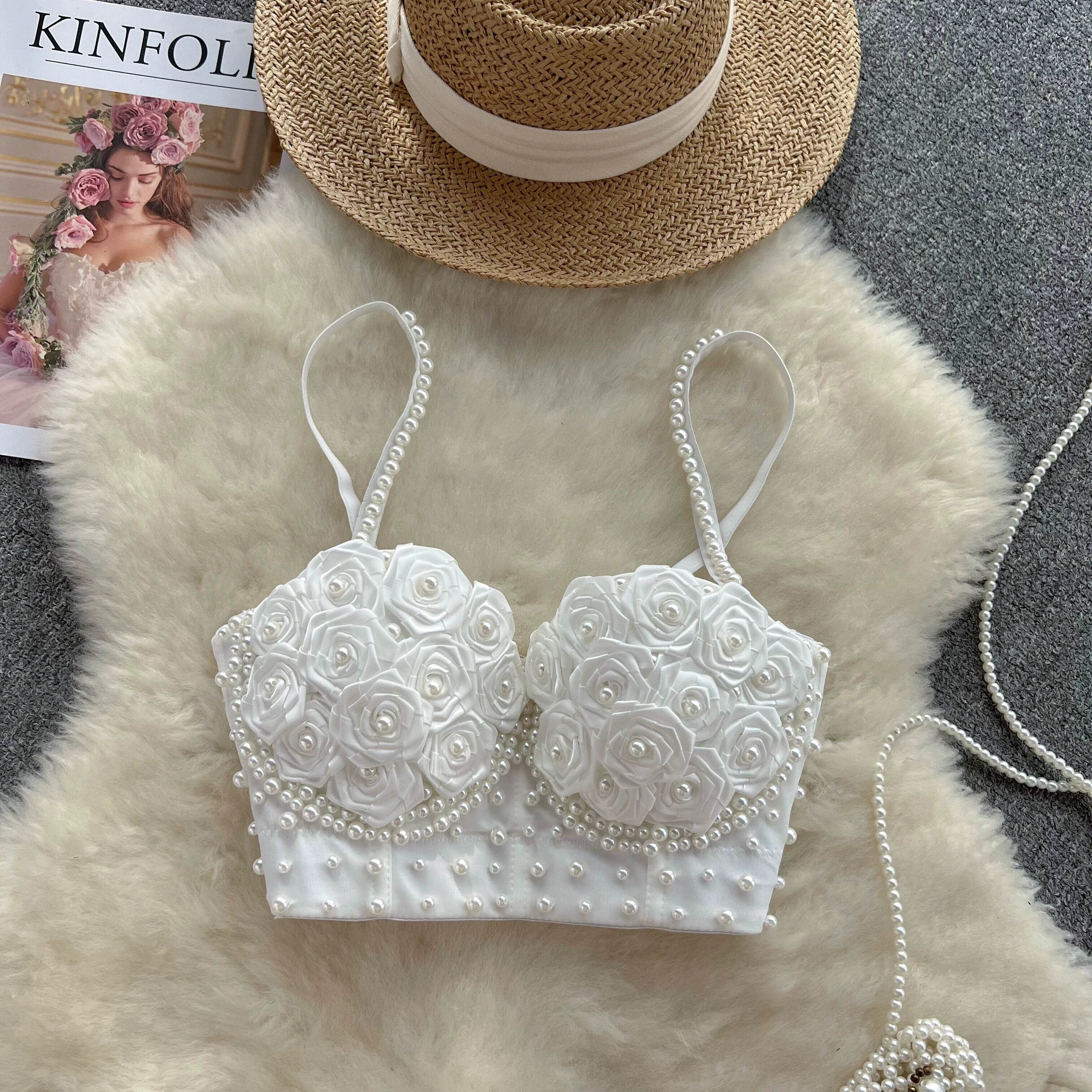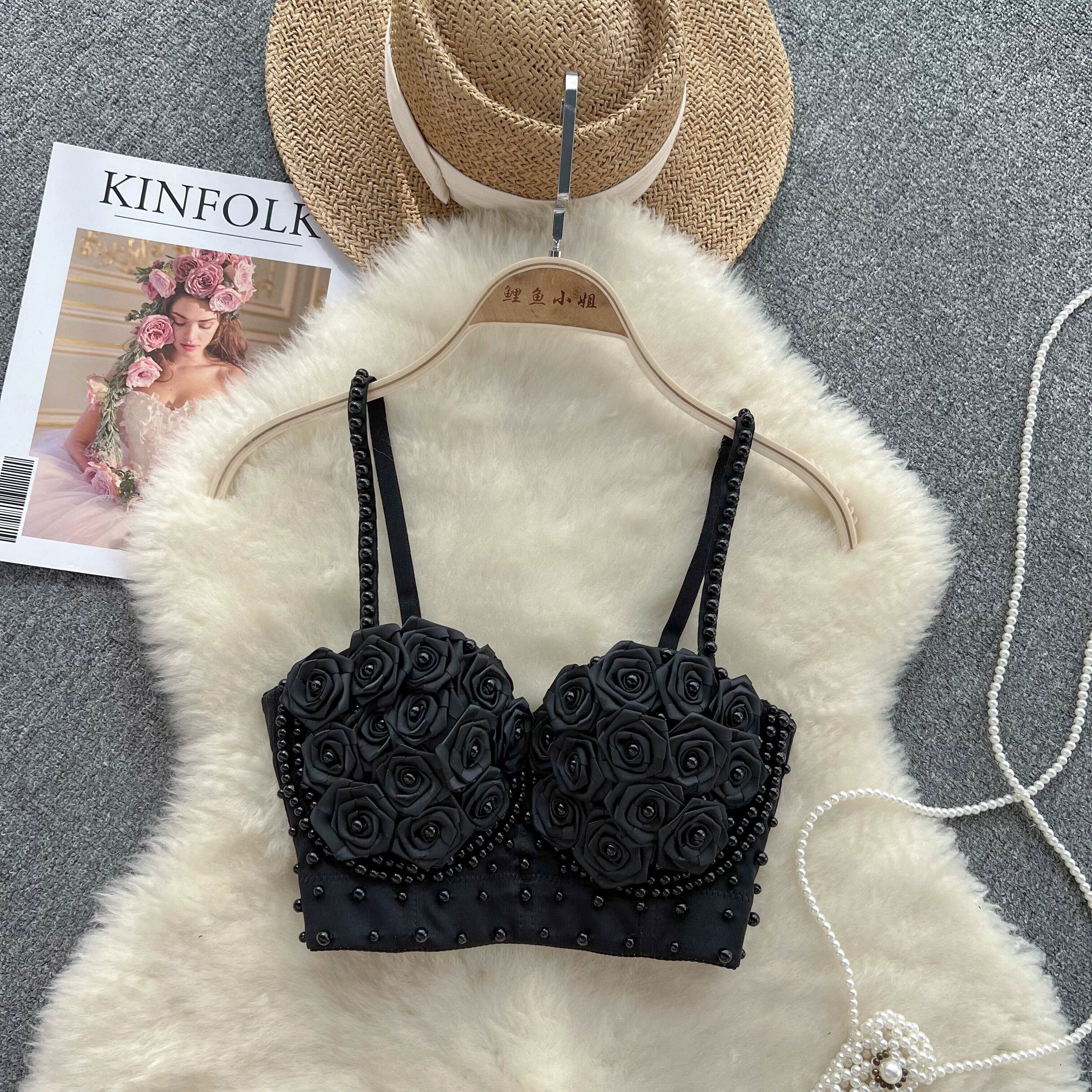 フランスのスーパー妖精重工業ビーズフラワーキャミソール女性のハイエンド気質ショートチューブトップセクシーな純粋な欲望コルセット ピュア フラワーデザイン lyxaj38411463570