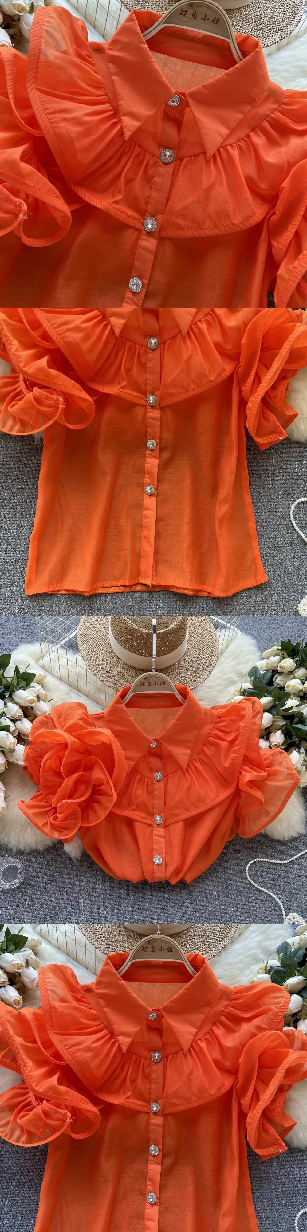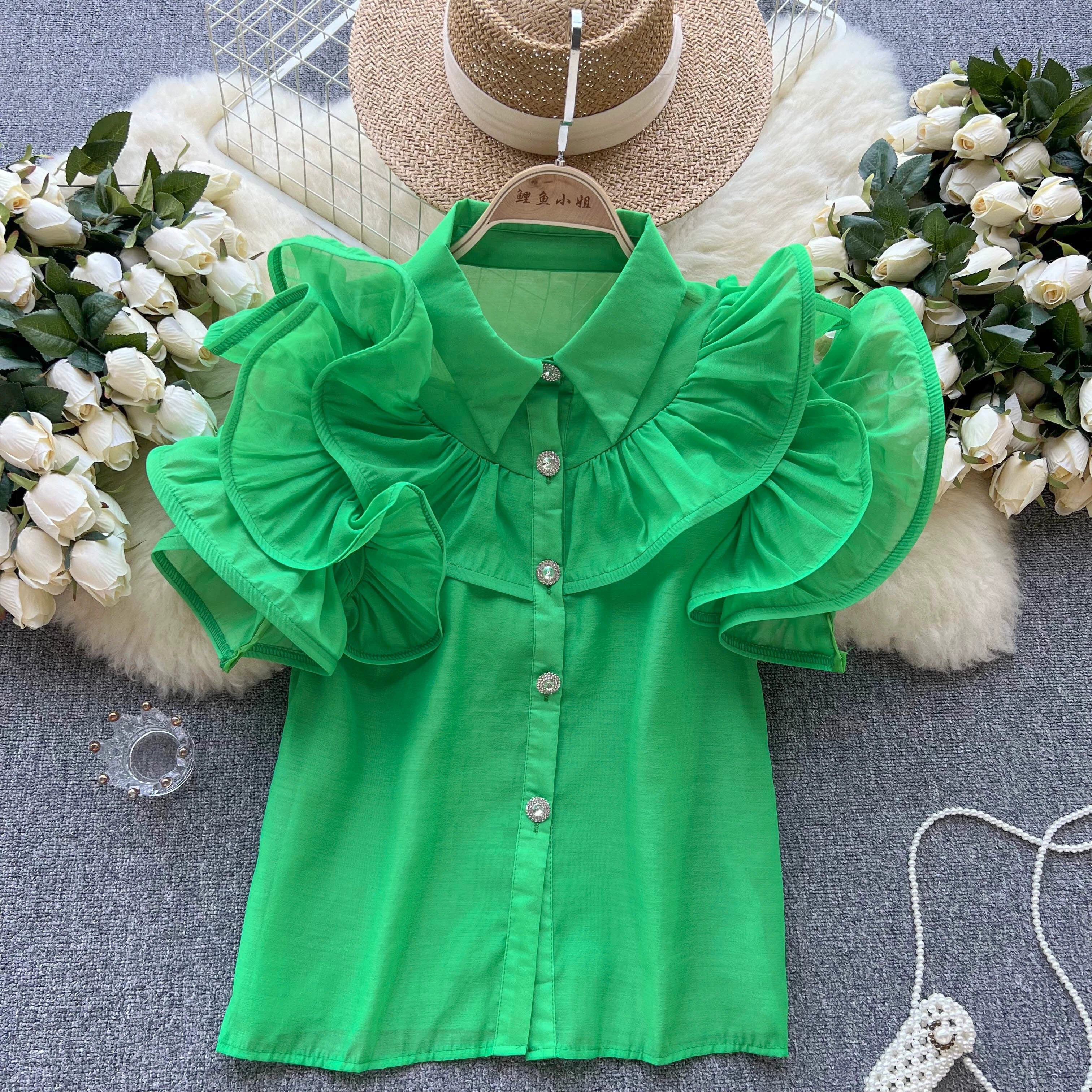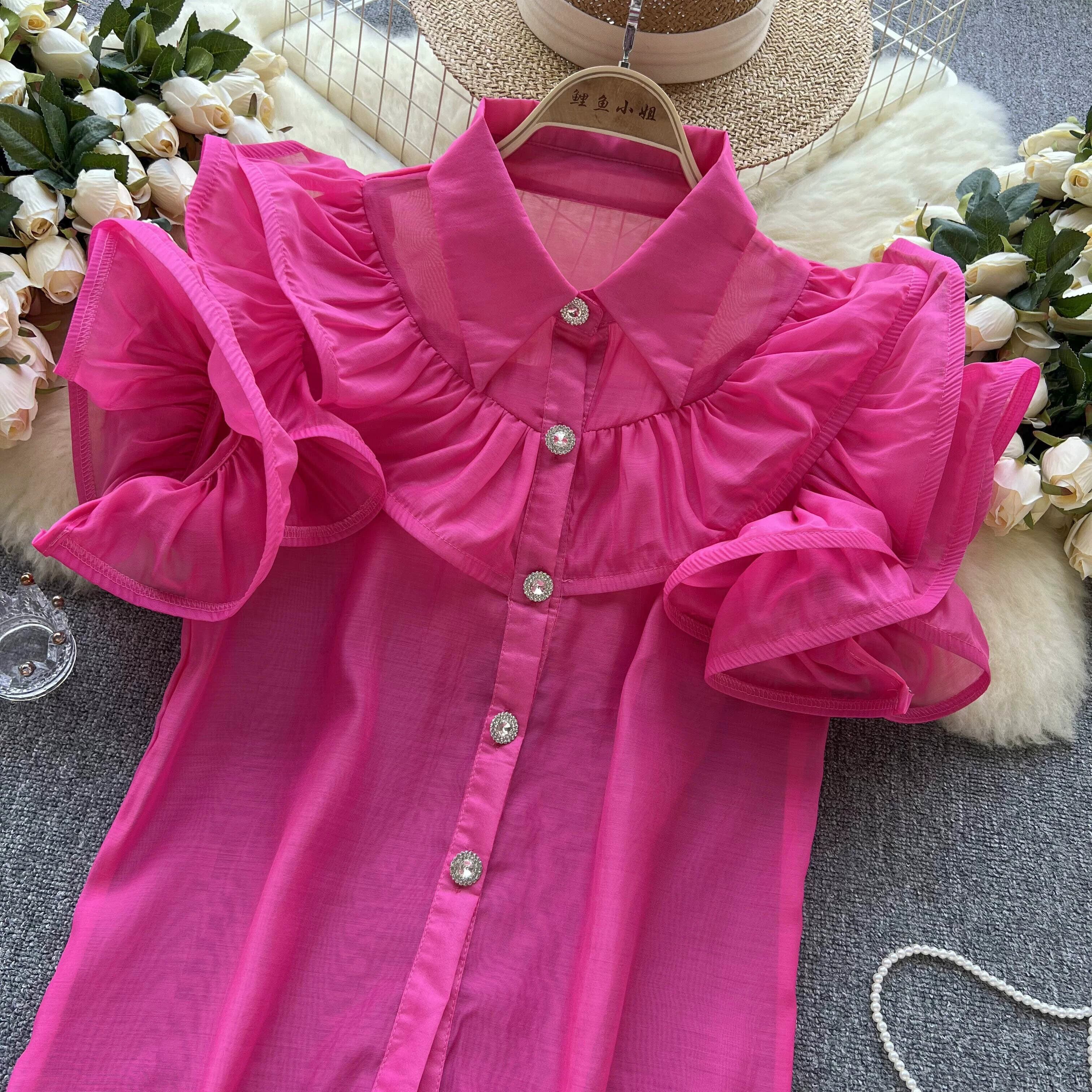 フランスの気質フリルフライングスリーブシフォンシャツレディース夏シックなデザインセンスゆったりと薄手のカーディガントップ ラッフル サマー 夏物 lyxaj63532385807
