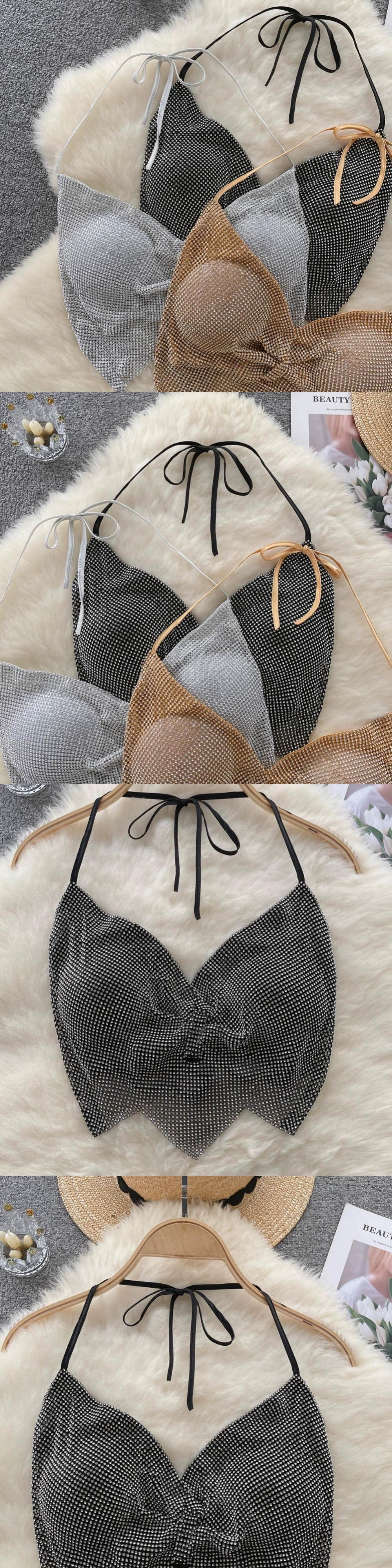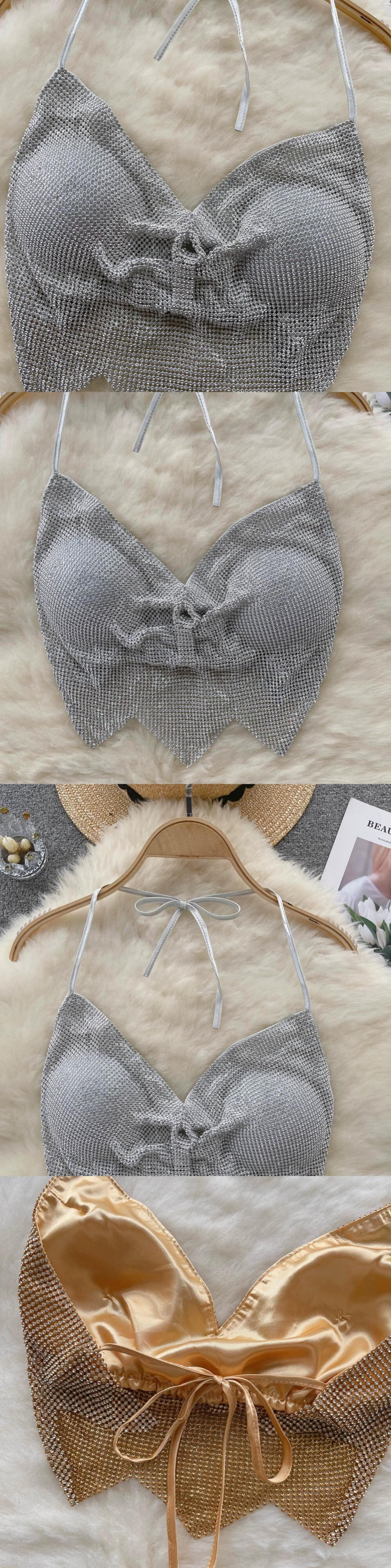 バンジーステージパーマンスパーマンス服女性重工業ダイヤモンドフルダイヤモンドチューブトップぶら下げネックキャミソールセクシーなトップ lyxaj94827262839