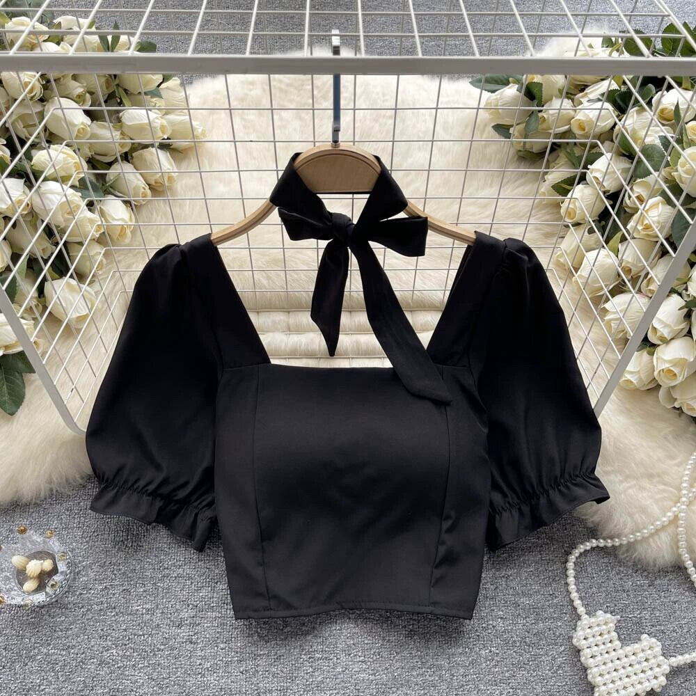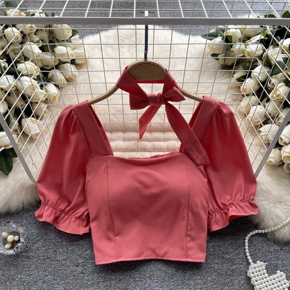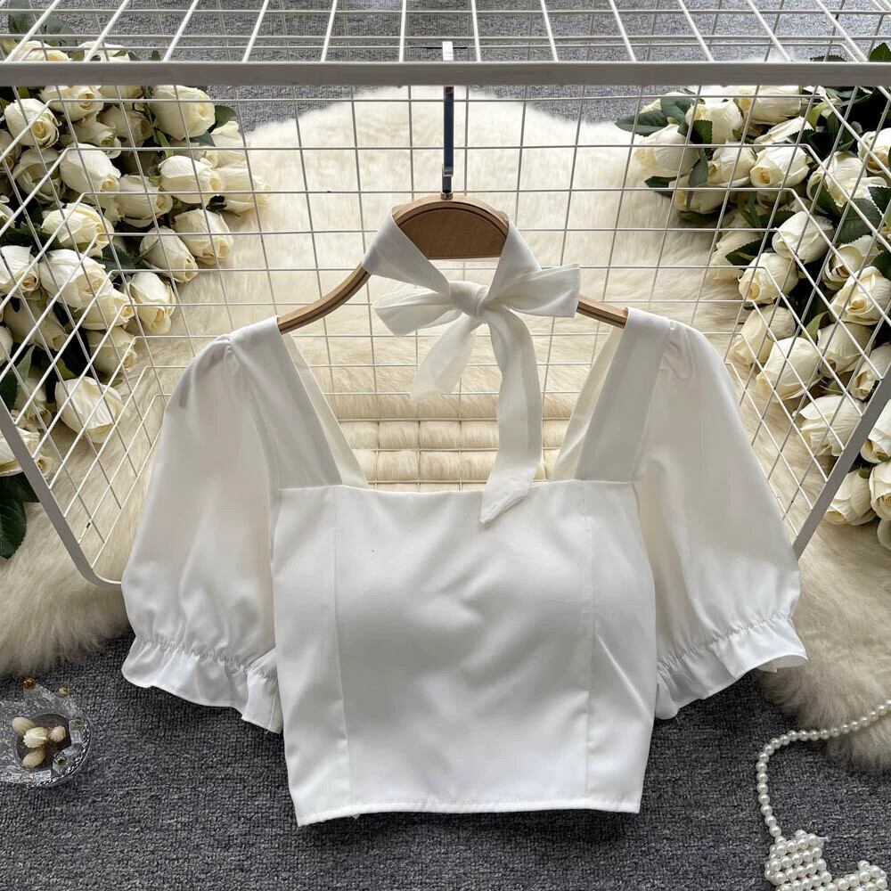 夏ニッチスクエアカラーパフスリーブシャツ女性の純粋な欲望スタイル甘いウエスト痩身ショートフレンチスリムシフォンシャツ 大人ガーリー スウィート キュート カジュアル サマー 夏物 ピュア スクウェア lyxaj1262938262