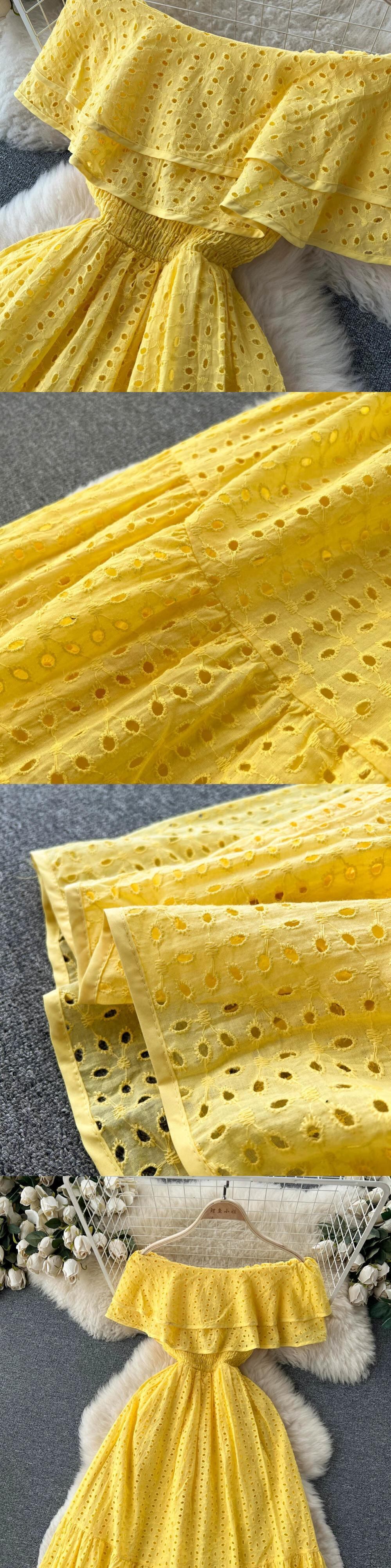 軽くて豪華なレトロなフレンチワンショルダーフリルウエストドレスレディース中空デザイン感の薄くて高級感のあるロングスカート lyxaj74853526430