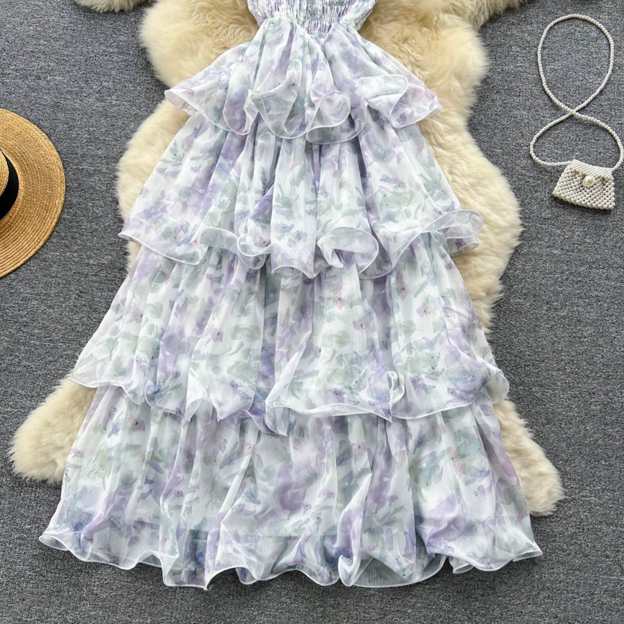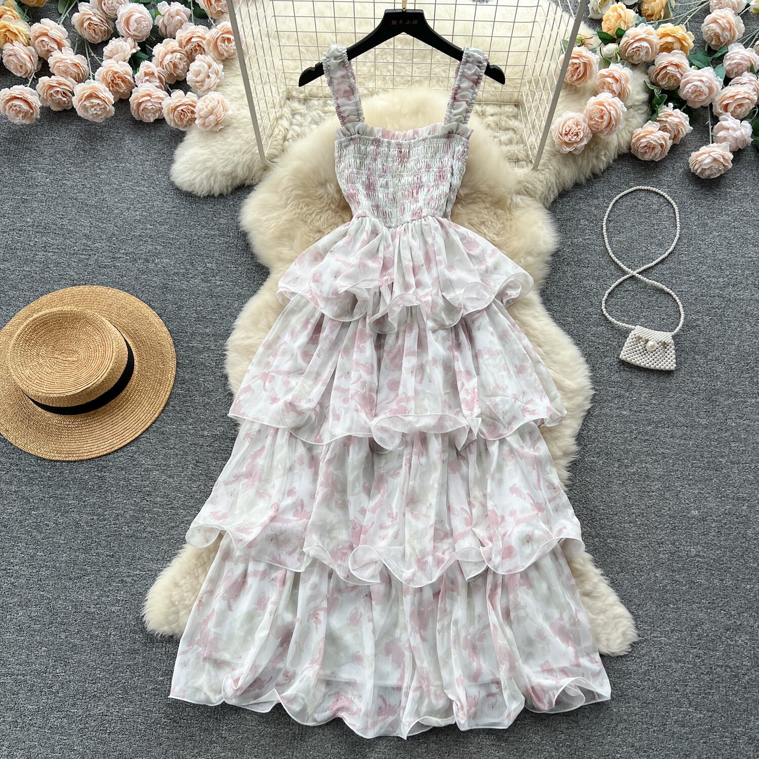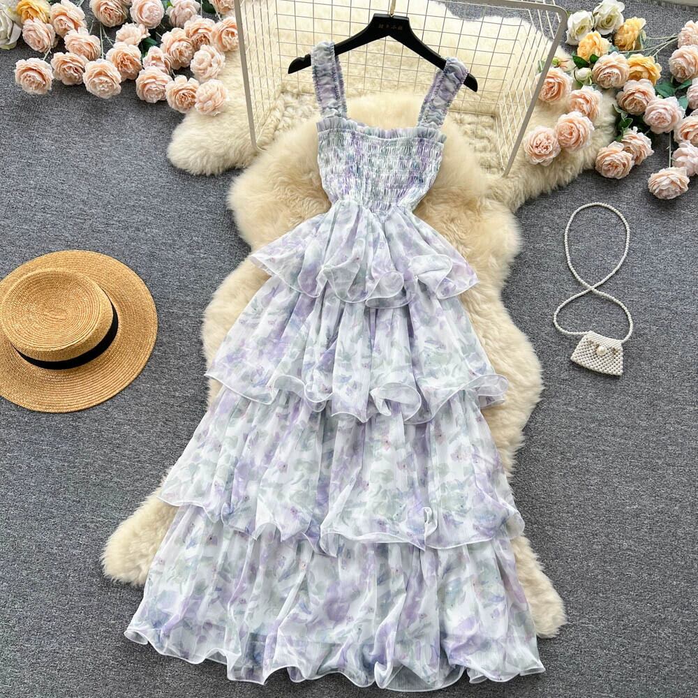 フランスのハイエンドの花柄スリングドレス女性の夏の甘い欲望の雰囲気ニッチシックなスーパーフェアリー美しいケーキスカート 大人ガーリー スウィート キュート カジュアル サマー 夏物 lyxaj48070236623