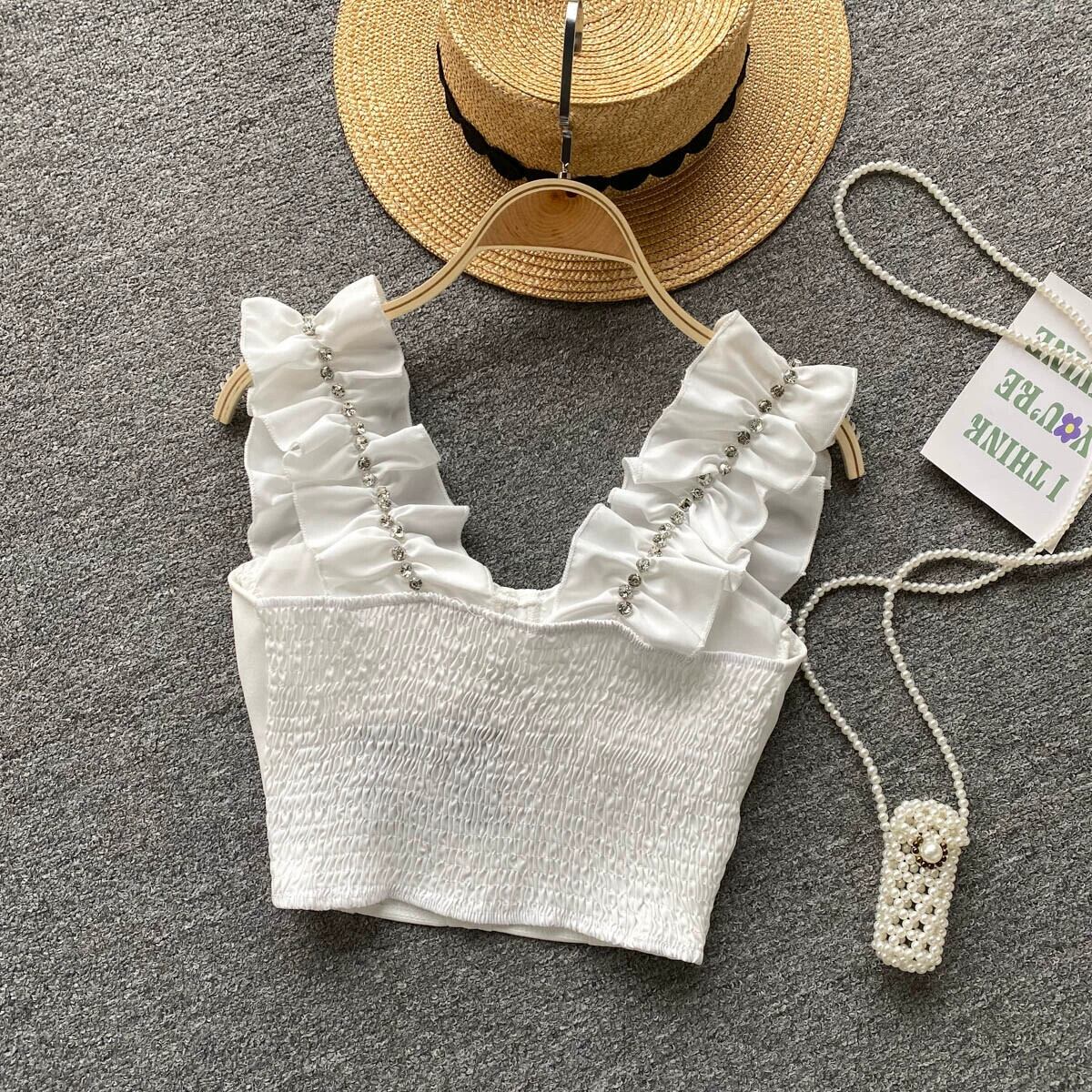 フレンチスタイルの小さなキャミソールレディース夏フィッシュボーンダイヤモンド折りデザイン純粋に着たいチューブトップトップ サマー 夏物 ピュア lyxaj18515840127