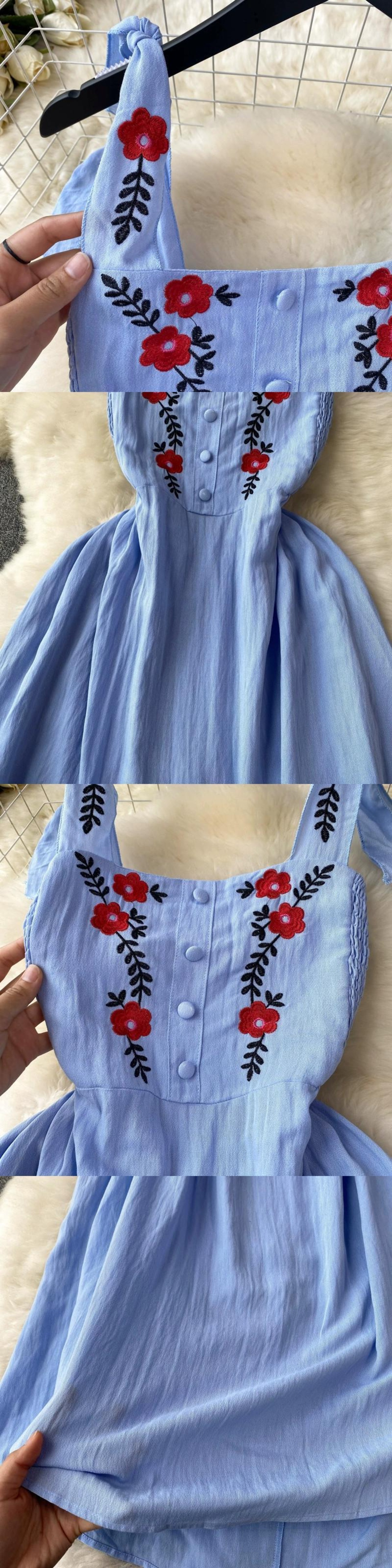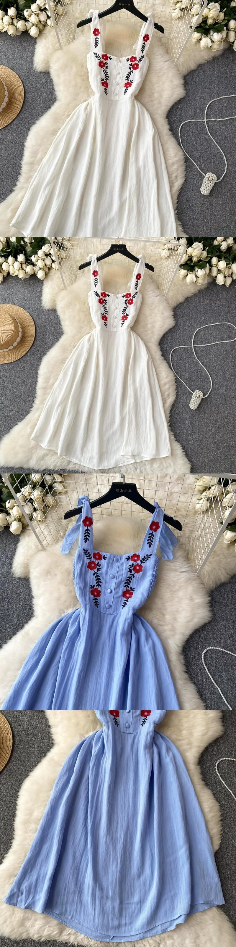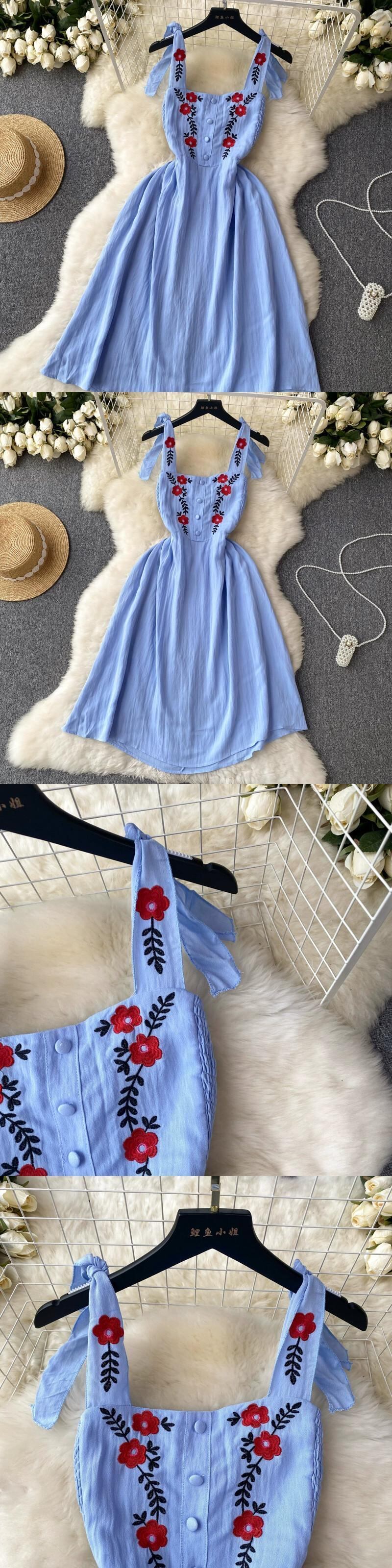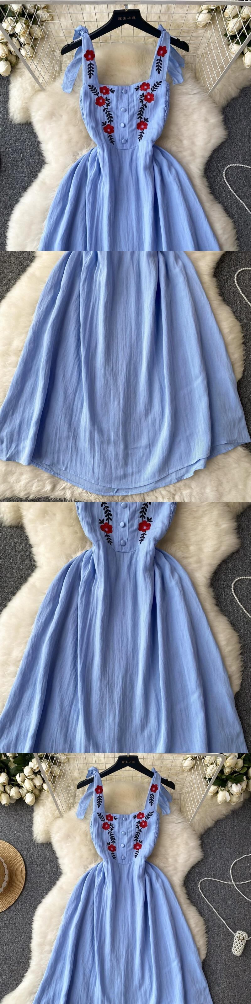 純粋な欲望のホリデースタイルサスペンダードレス女性の夏の刺繍デザインセンスニッチシックなフレンチハイエンド妖精ドレス サマー 夏物 lyxaj97803374549