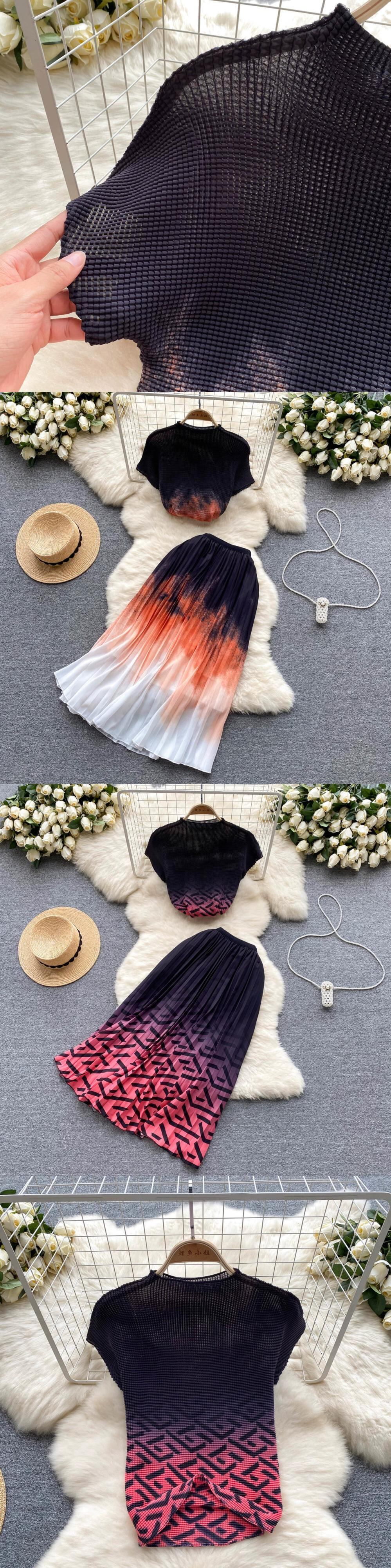 少し太くて細いスーツの女性の夏服 2023 新しい重工業プレスプリーツシフォントップ多用途スカートツーピーストレンド サマー 夏物 lyxaj91868257564
