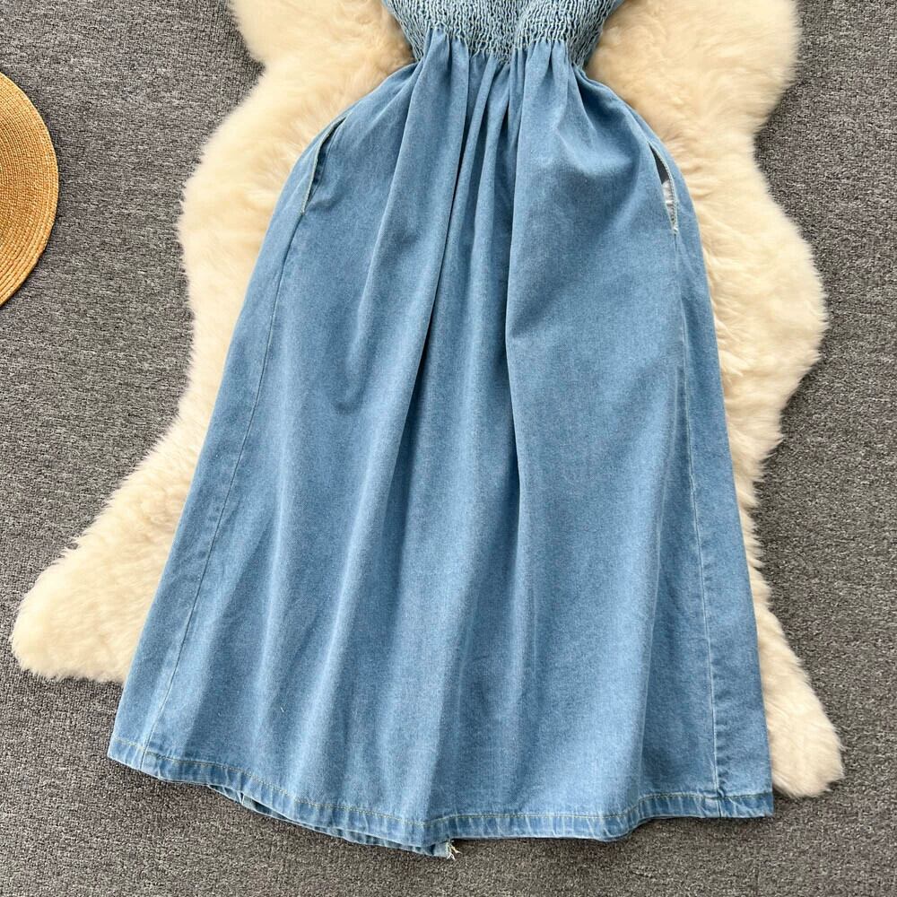 アメリカンデニムサスペンダードレスレディース夏シングルブレストウエストフランス高品質甘いクール純粋な欲望のロングスカート 大人ガーリー スウィート キュート カジュアル サマー 夏物 ピュア lyxaj47624818898