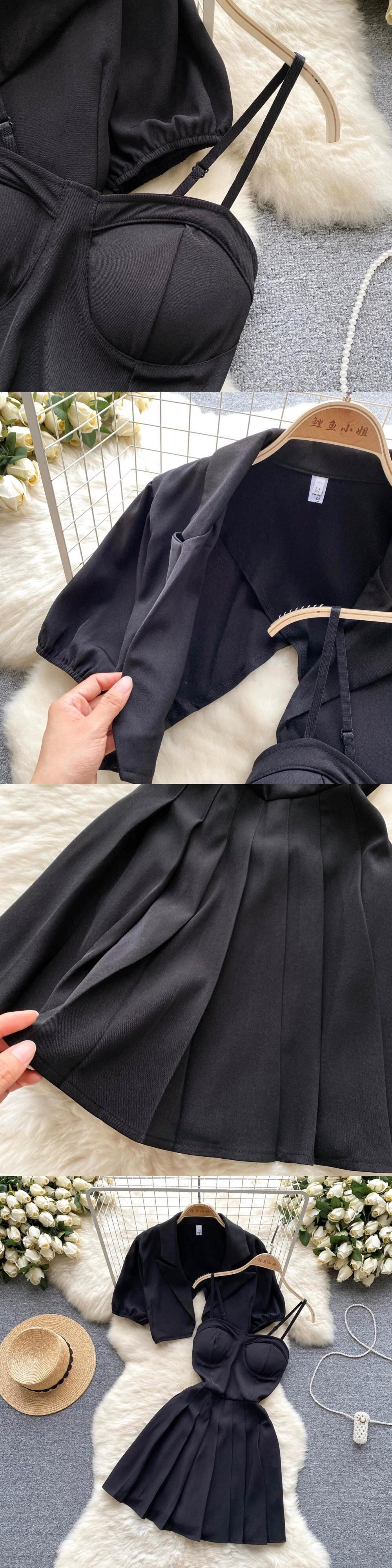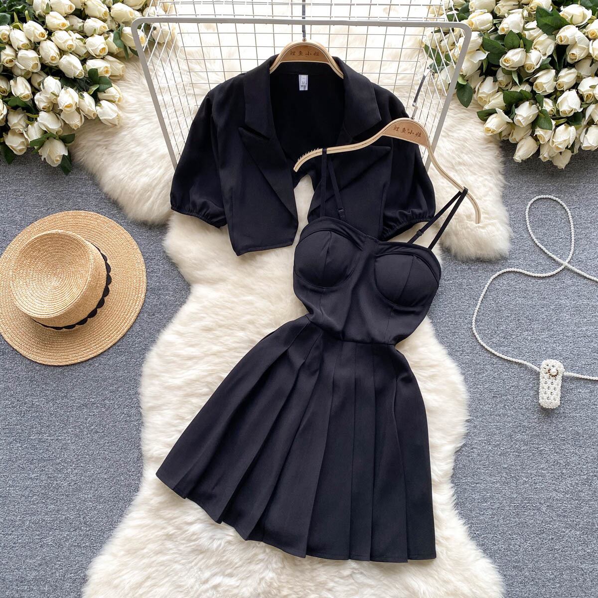プロのスーツの女性のサマードレス 2023 新しいレディーススーツジャケットショートオールマッチサスペンダードレスツーピーストレンディ 夏物 lyxaj57519860256