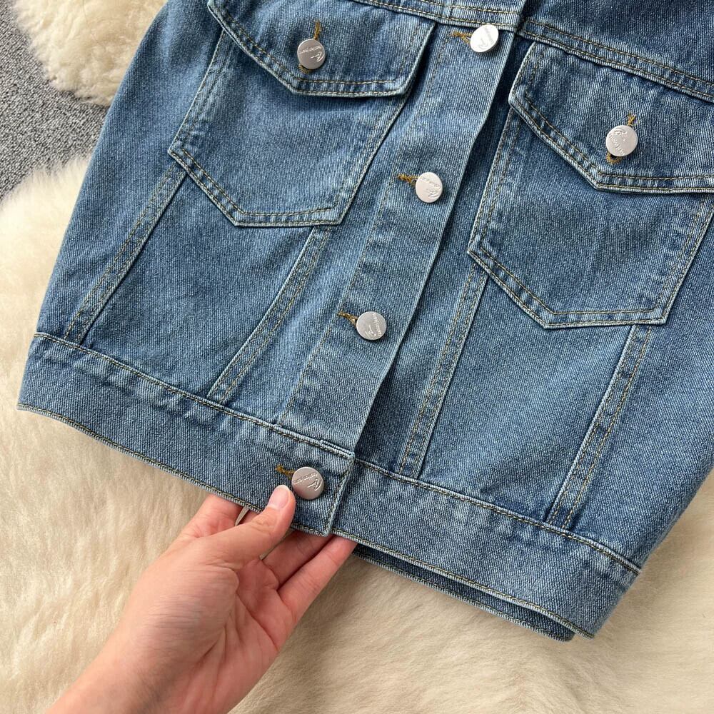 機能的なホットガールデニムスーツ夏レトロ甘いクールノースリーブシャツジャケット + ウエストルーズワイドレッグショーツ 大人ガーリー スウィート キュート カジュアル サマー 夏物 ブルマー ワイドパンツ lyxaj69812148758